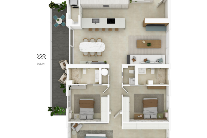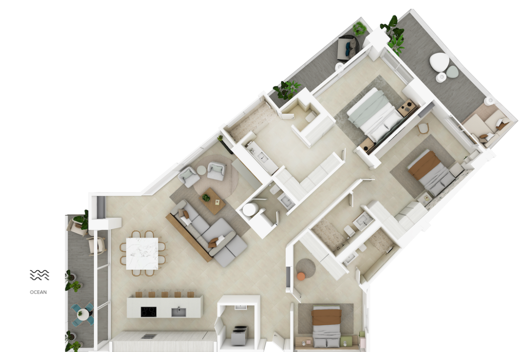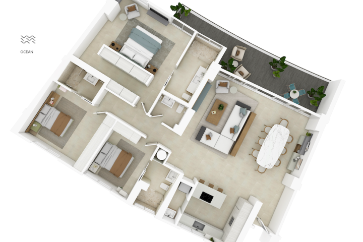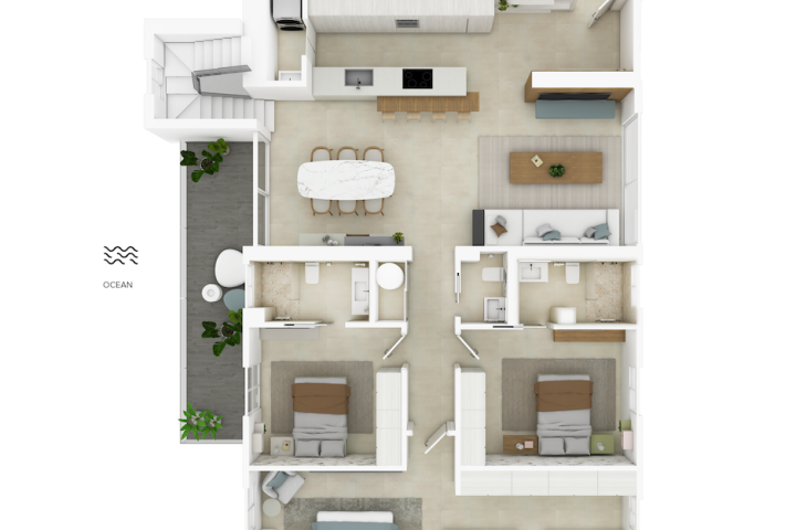 To provide the last word in happiness and tranquility as well as the ultimate in comfort, intelligent technology, luxurious finishes, and exquisite space. Its location brings the island right at your doorstep, from being steps away from one of the 3 best beaches in the world, Eagle Beach, to also facing the biggest birds refuge in the Caribbean, yet also just steps away from casinos, Palm Beach, deep-sea fishing boats, and exploration spots. Getting groceries is practical with Super Food, one of Aruba’s best and newest supermarkets, galleries, and boutiques. Eagle Beach allows for easy access to the entire island with its gorgeous small island highways and roads that connect the entire island in less than 60 minutes' drive. A true 360!