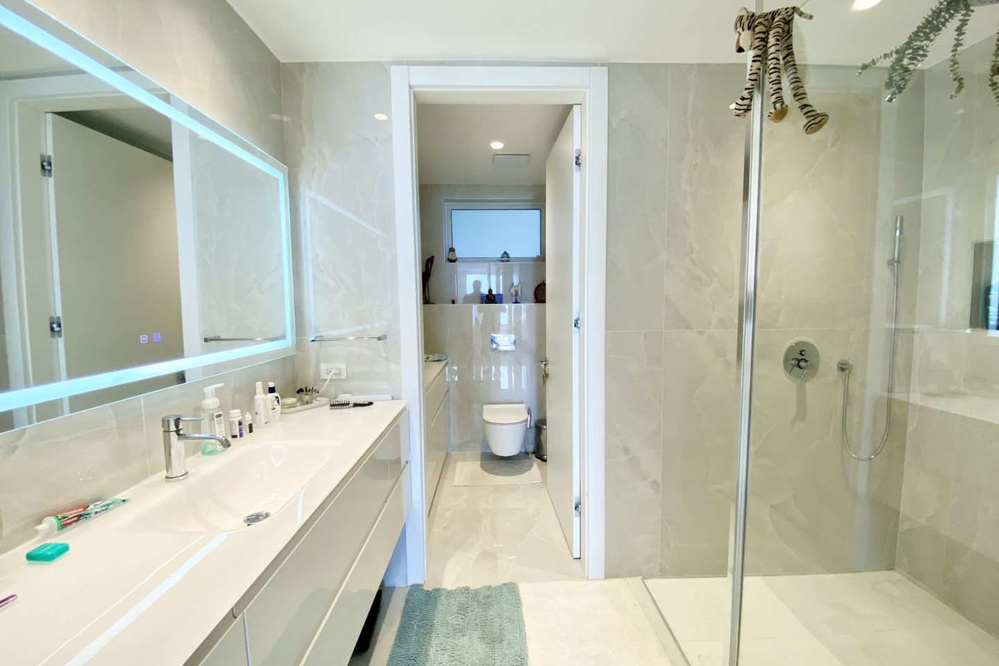 This luxury and innovative new penthouse is for 95% developed and will be finished any time with the second bedroom on the roof terrace with ensuit bathroom and laundry. The 108m2 penthouse features two bedrooms and 2,5 bathroom with a beautiful open kitchen layout with connecting 10m2 balcony and stairs to a 108m2 rooftop with spectacular views and sunsets.