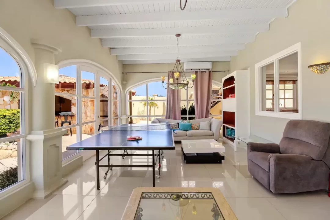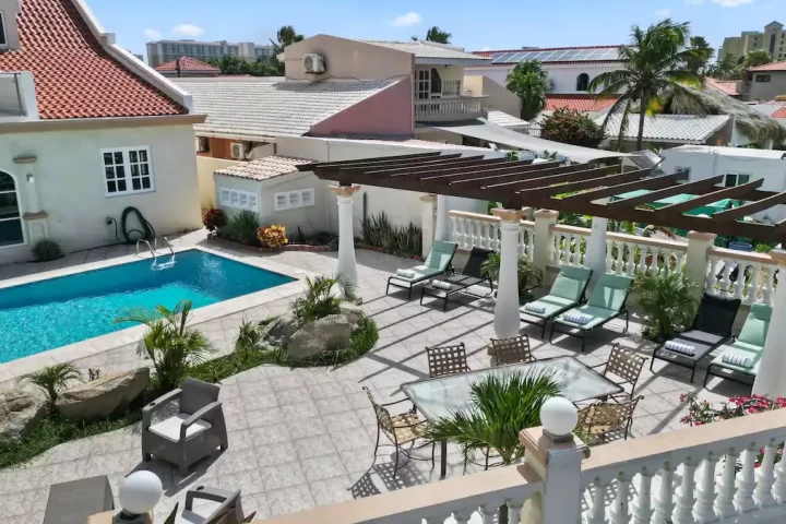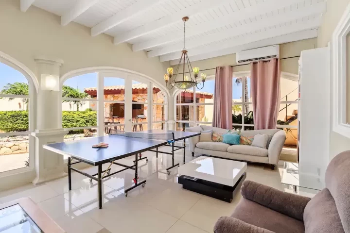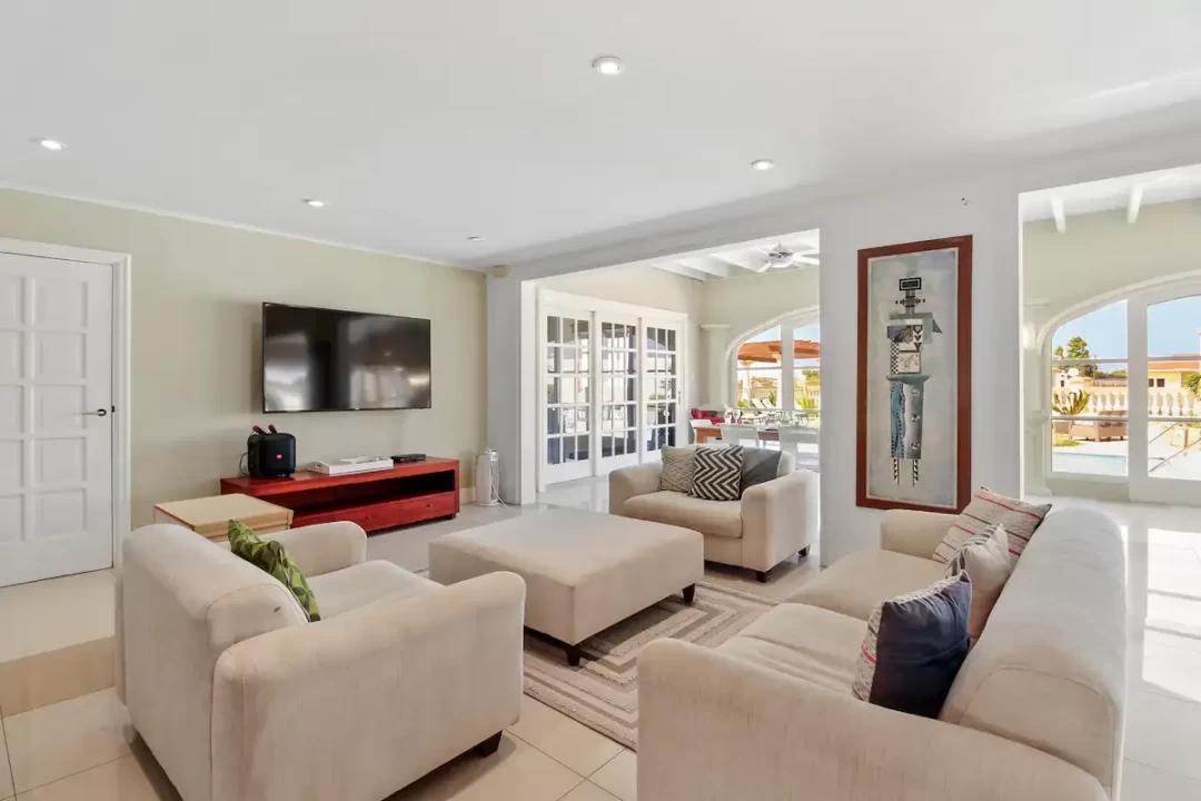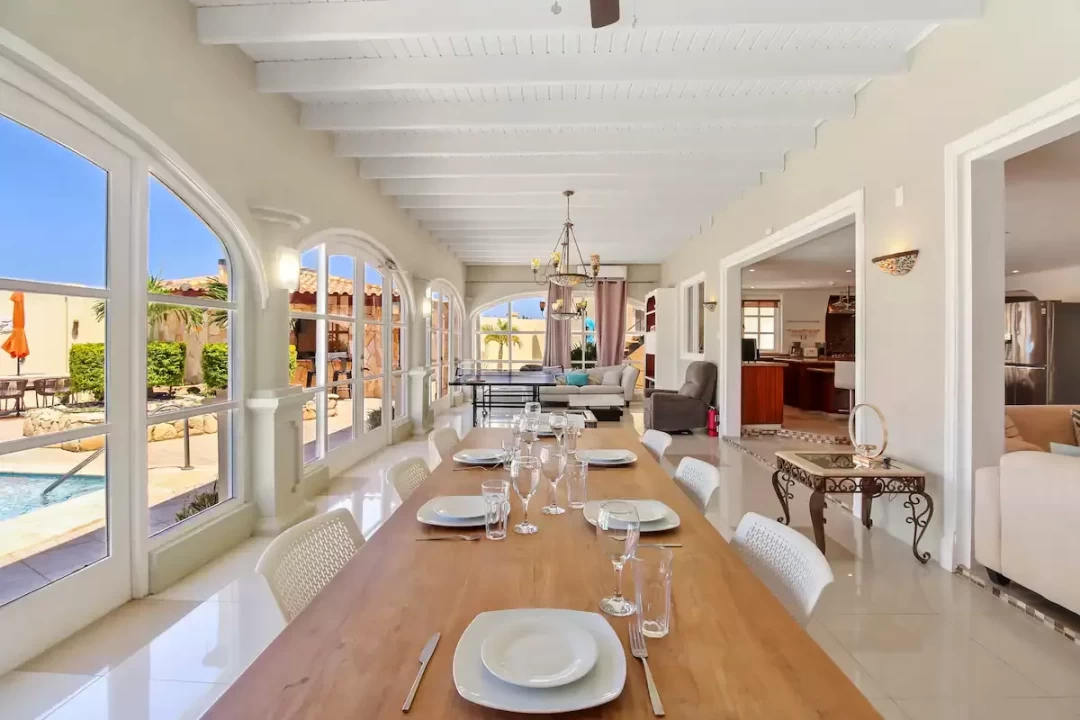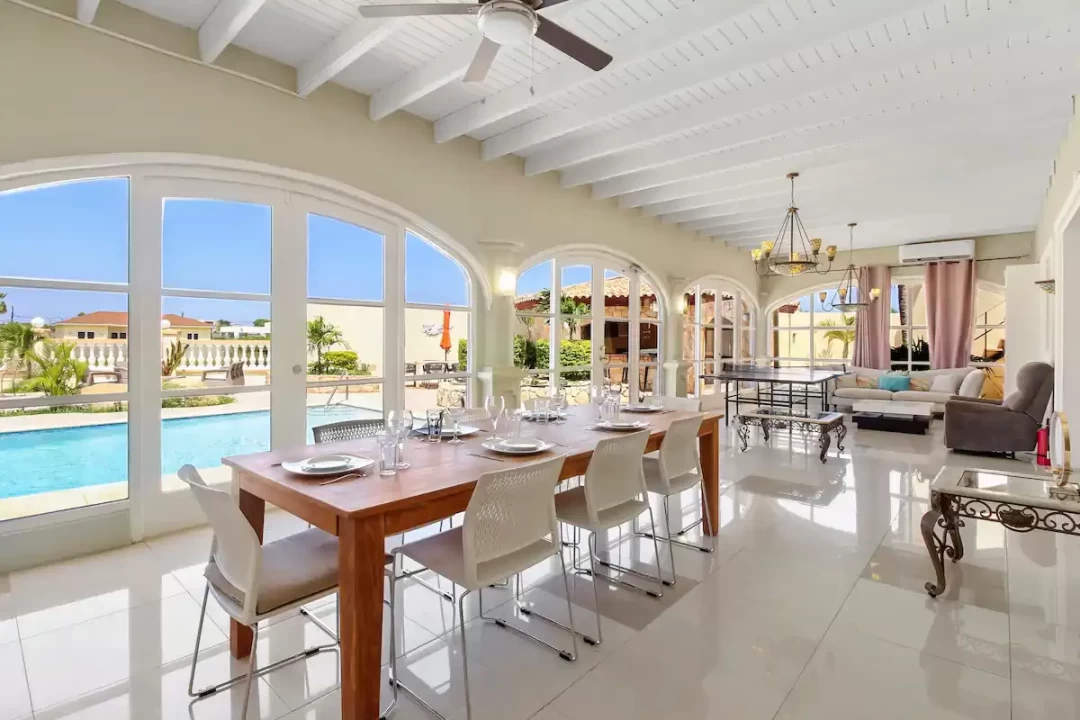 The villa has 7 bedrooms, 6 bathrooms, a large living room and dining area. This villa also offers two 1 bedroom, 1 bathroom apartments that is separate from the main home.