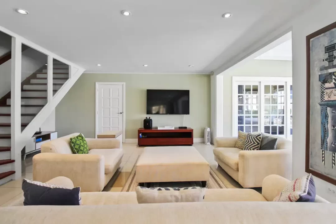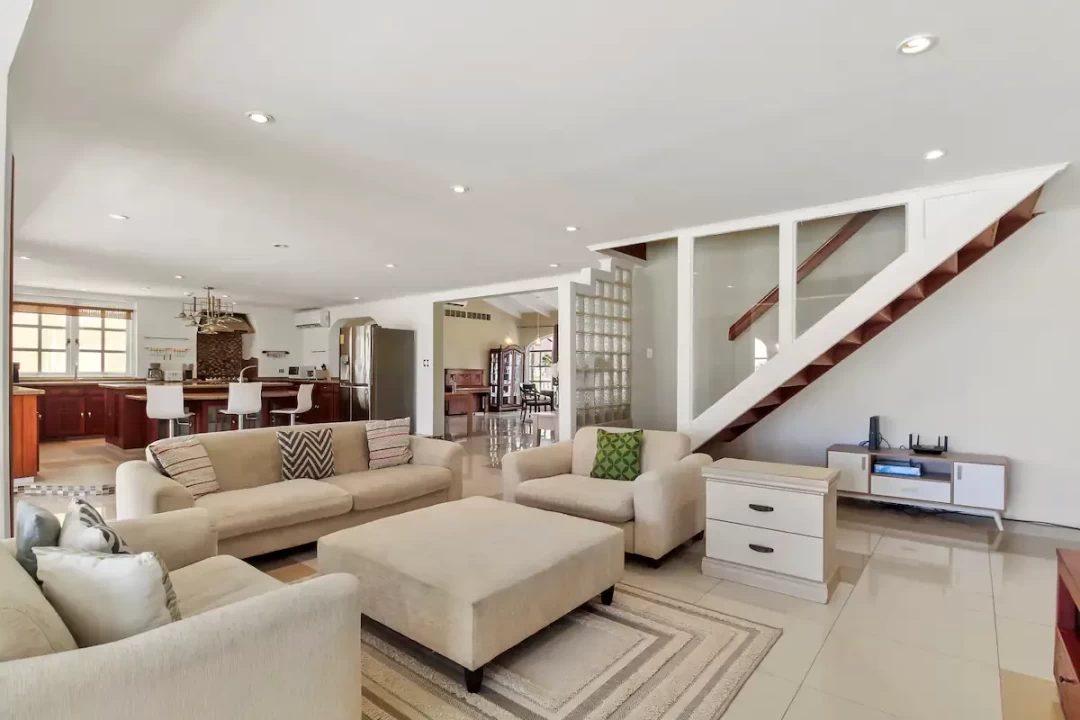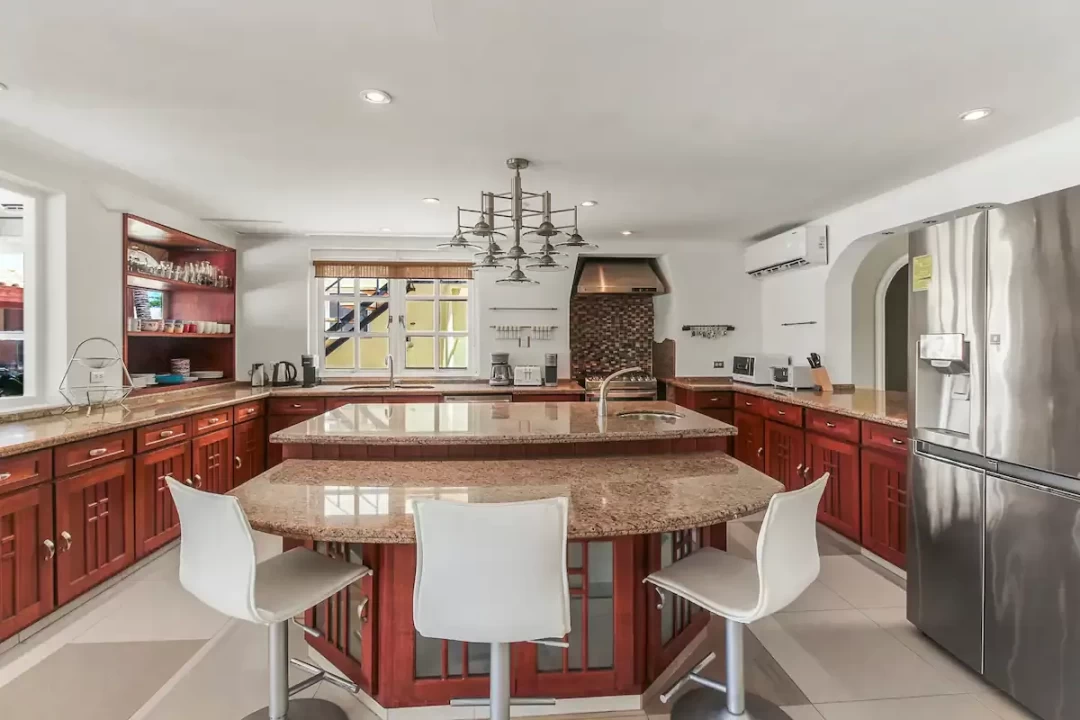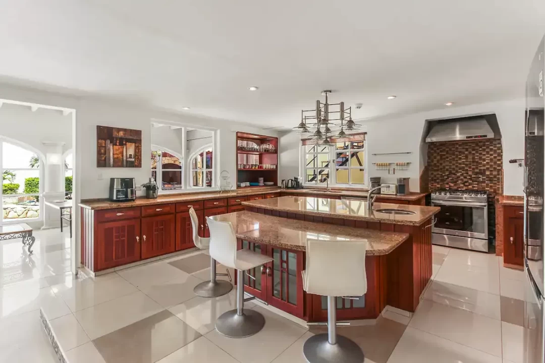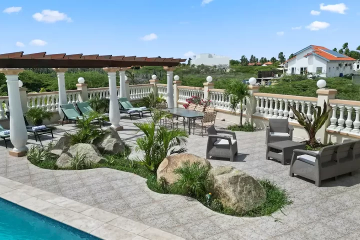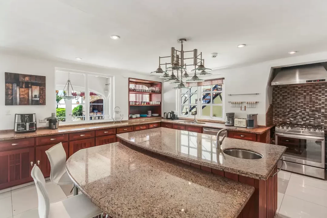 The villa has 7 bedrooms, 6 bathrooms, a large living room and dining area. This villa also offers two 1 bedroom, 1 bathroom apartments that is separate from the main home.