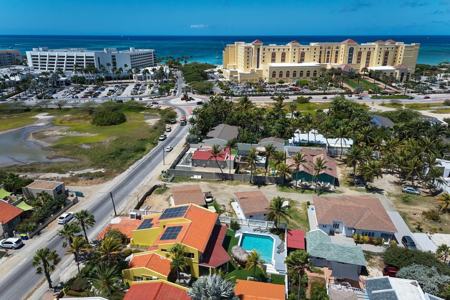 Located in the sought-after Bakval neighborhood, this beautiful two-story residence is just a short walk from Aruba’s high-rise hotels, the Ritz-Carlton, and the renowned Palm Beach. Offering the perfect combination of comfort, style and investment potential, this turn-key home is an ideal choice for those seeking luxury living in a prime location.