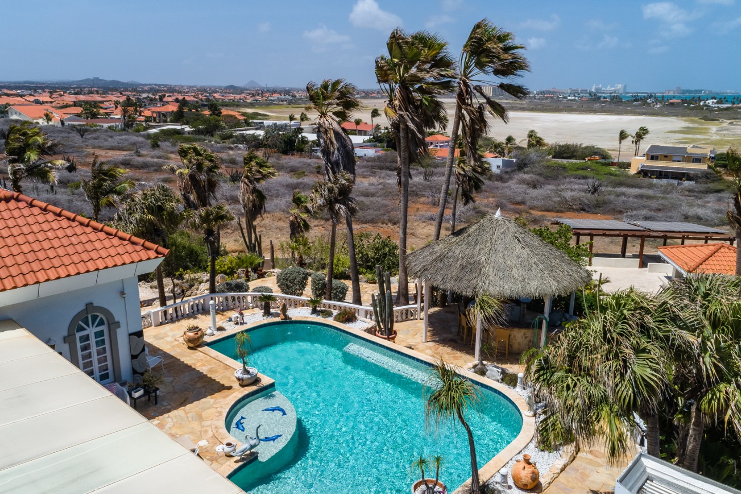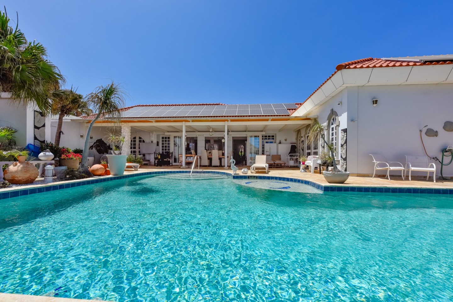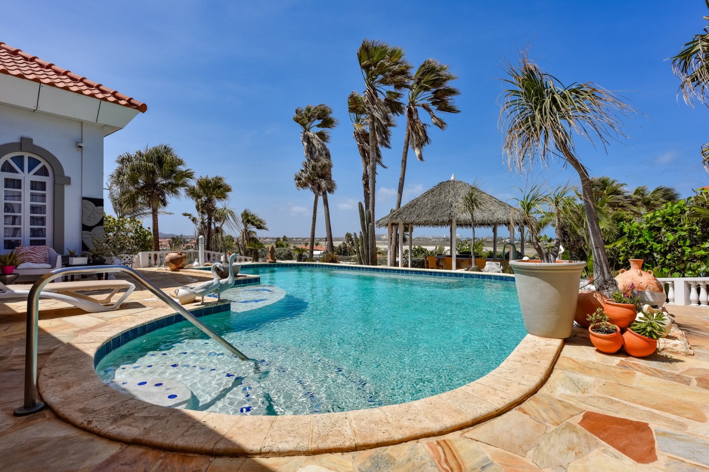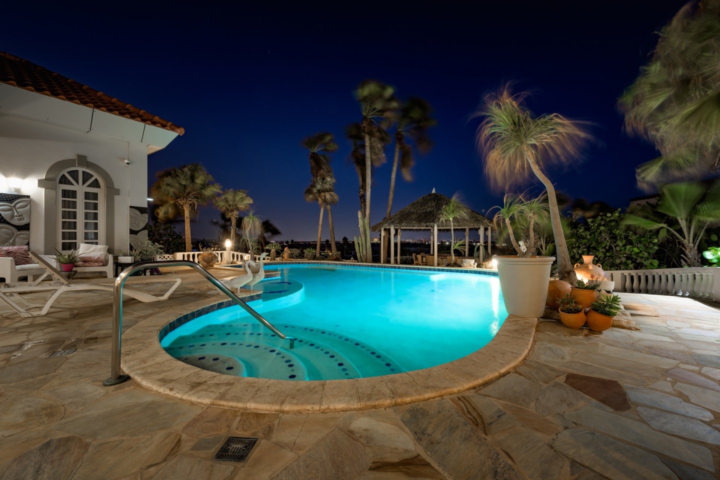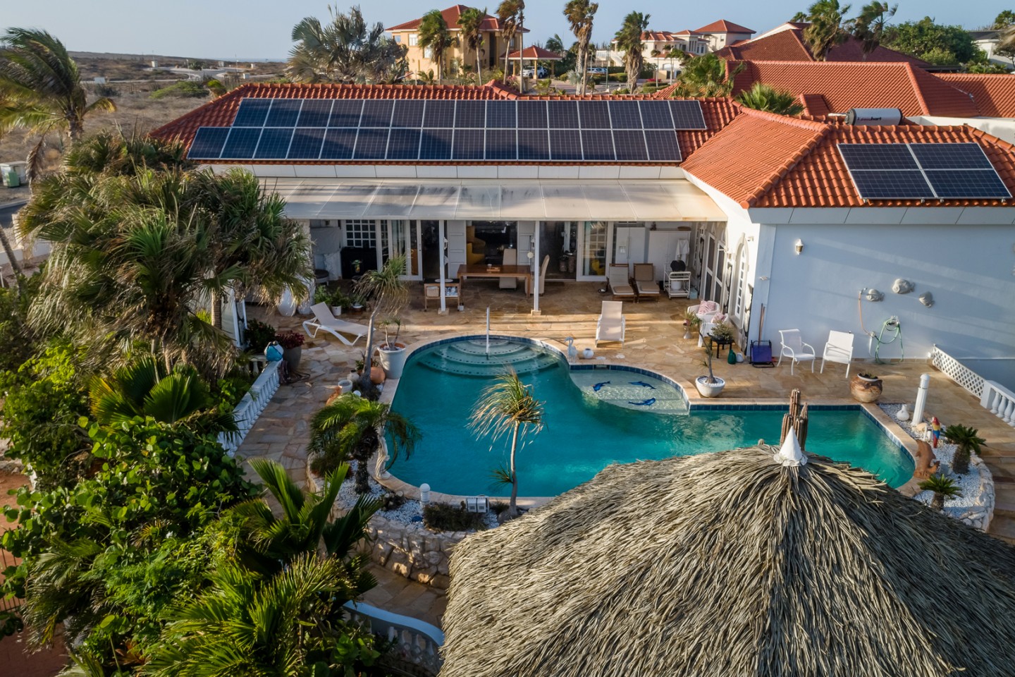 Enjoy vast views of Aruba from the back garden or sit and lounge by the pool and take in the sun-drenched Caribbean weather. The cabana bar is the perfect spot to entertain friends and family and host fun event for any occasion. The villa also features a separate maids quarters with private entrance, gym, laundry room with storage, covered parking for 2 cars and solar panels.
