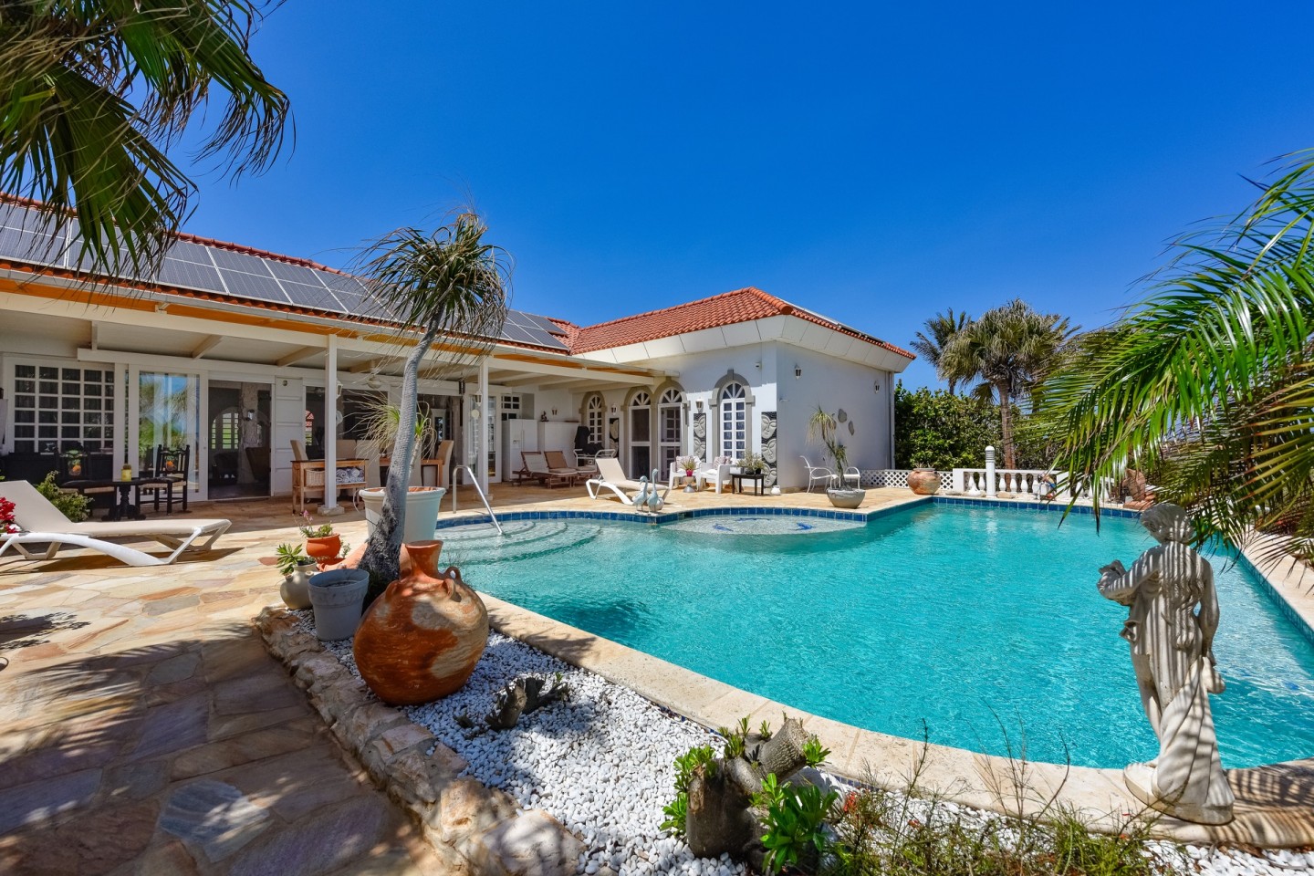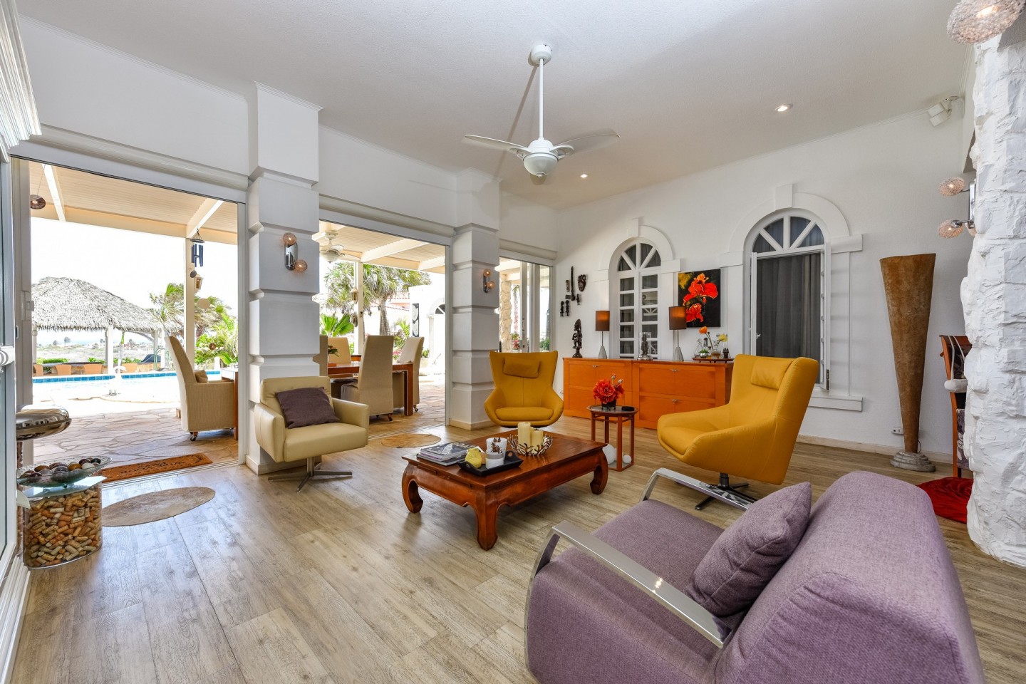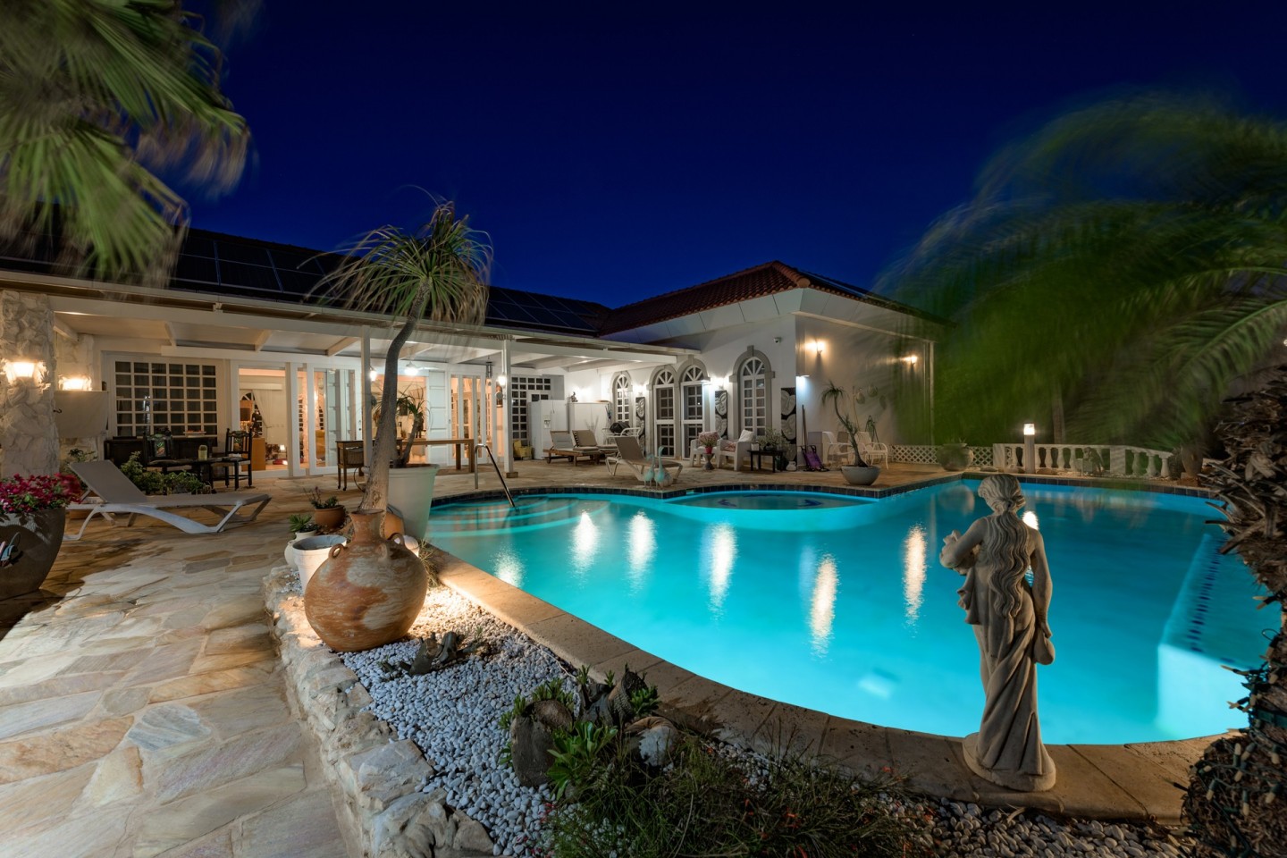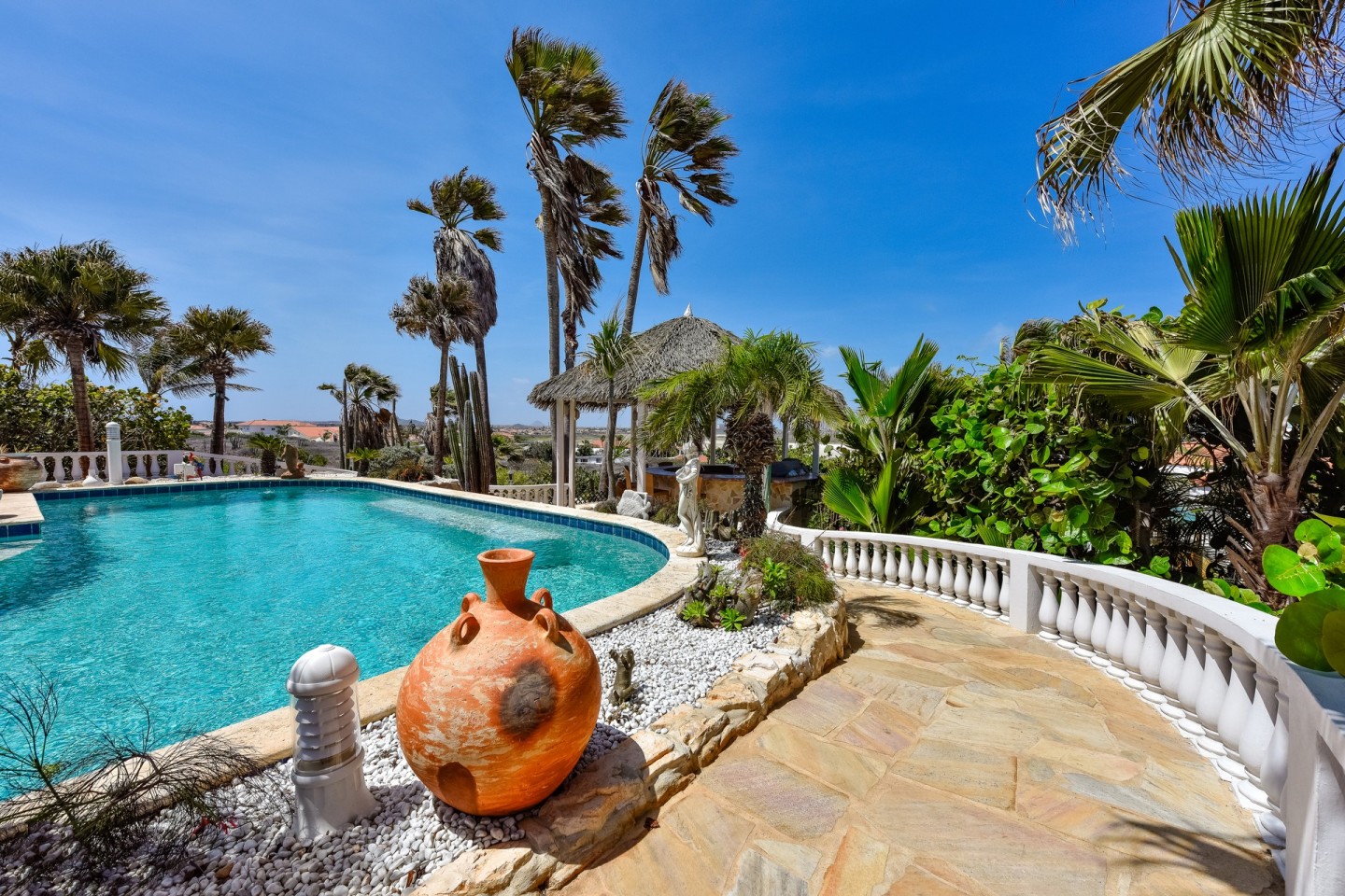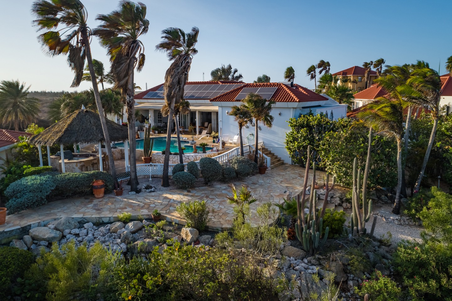 Enjoy vast views of Aruba from the back garden or sit and lounge by the pool and take in the sun-drenched Caribbean weather. The cabana bar is the perfect spot to entertain friends and family and host fun event for any occasion. The villa also features a separate maids quarters with private entrance, gym, laundry room with storage, covered parking for 2 cars and solar panels.