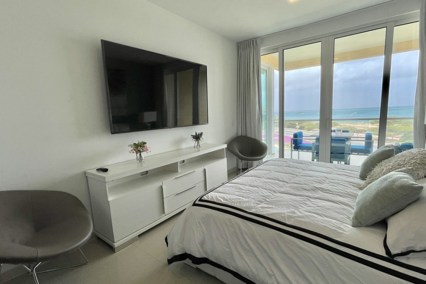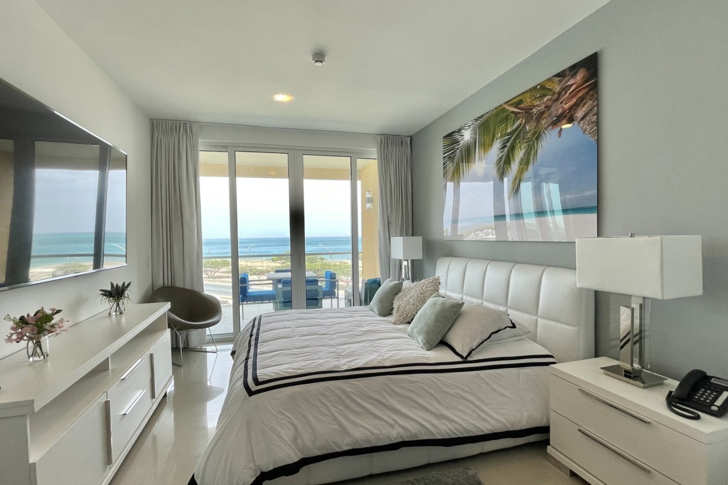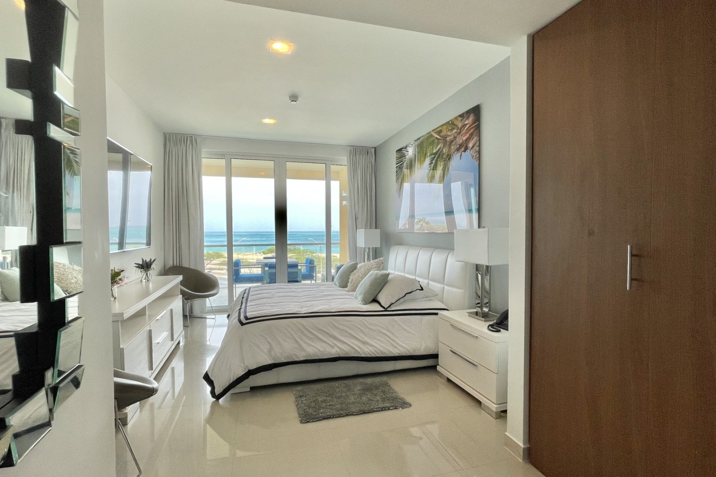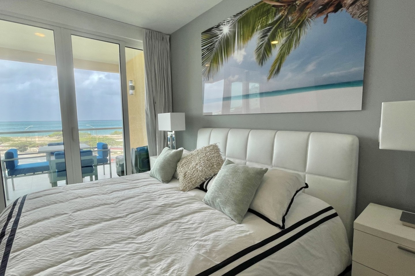 Motivated Seller/ Reduced to $650.0000, offering you an incomparable opportunity to own a condo on this beautiful property, facing the amazing soft white sands of Eagle Beach, rated one of the best beaches in the world sits this stunning upscale condominium, Blue Residence. This Oceanfront condo residence has a beautiful ocean view and has plenty of hidden gems.