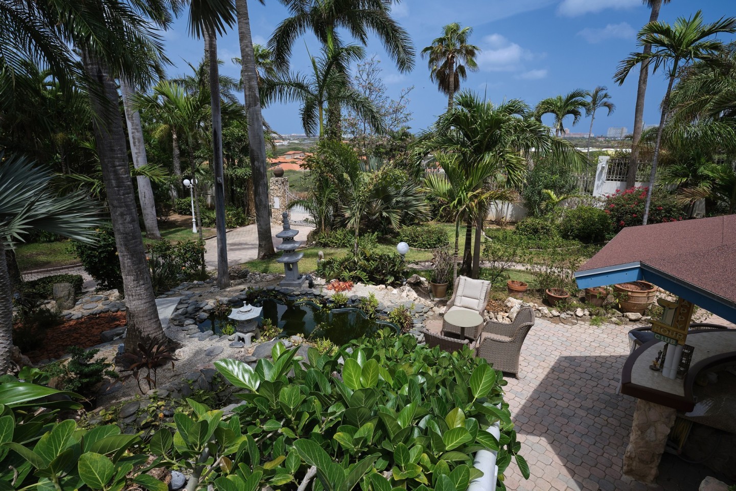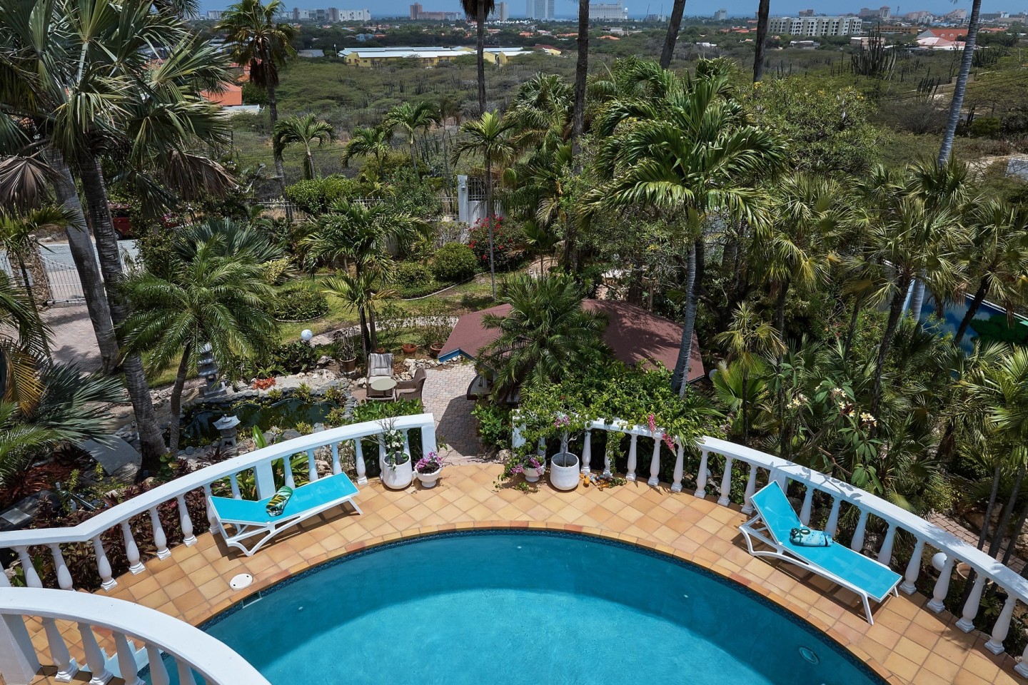 Designed by a Dutch landscape architect who fell in love with Aruba, the garden is a living masterpiece. It’s arguably one of the most enchanting private gardens on the island. Mature palms, native flora, and immaculate green grass set the stage for outdoor living at its best.