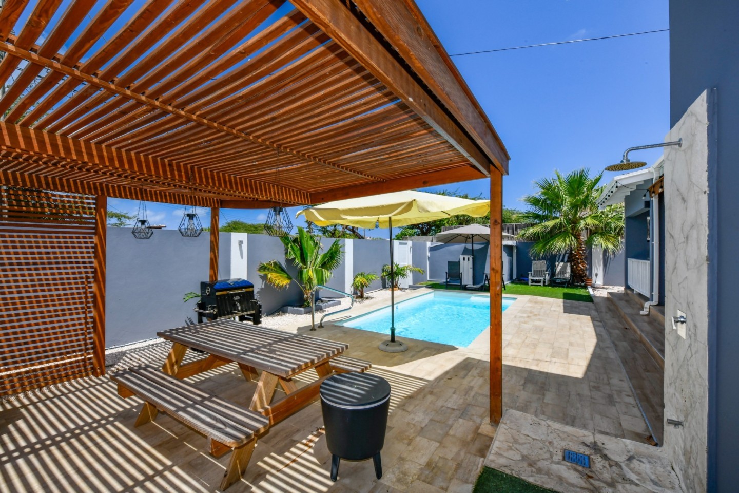 Located in a prime location, this home is nestled in a quiet, tranquil neighborhood. It offers the perfect retreat from the hustle and bustle of everyday life while remaining conveniently close to Aruba's top attractions, including schools, shopping, dining, and entertainment.