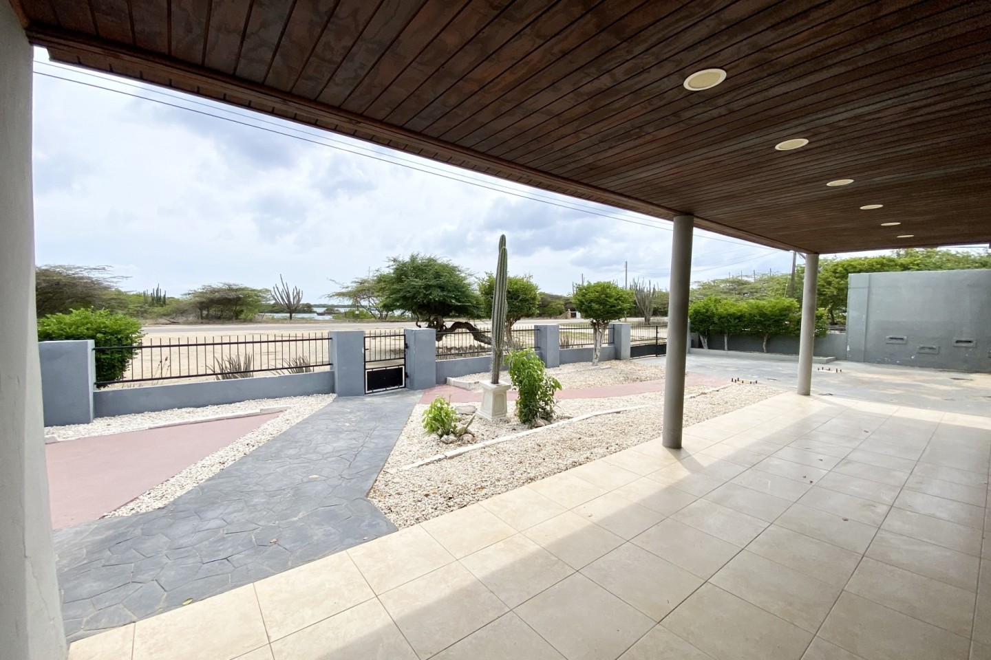 This waterfront villa is located in the peaceful neighborhood of Bucuti, next to the airport of Aruba. This waterfront property has the possibility to enjoy the ocean directly from the house and the sunroof terrace where you have the best one-of-a-kind views.