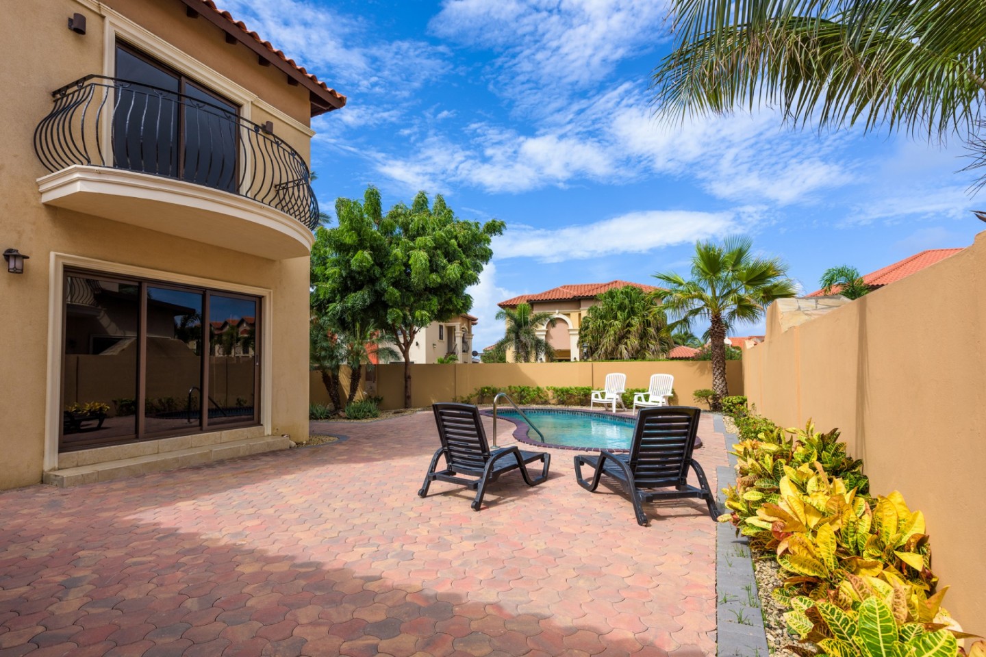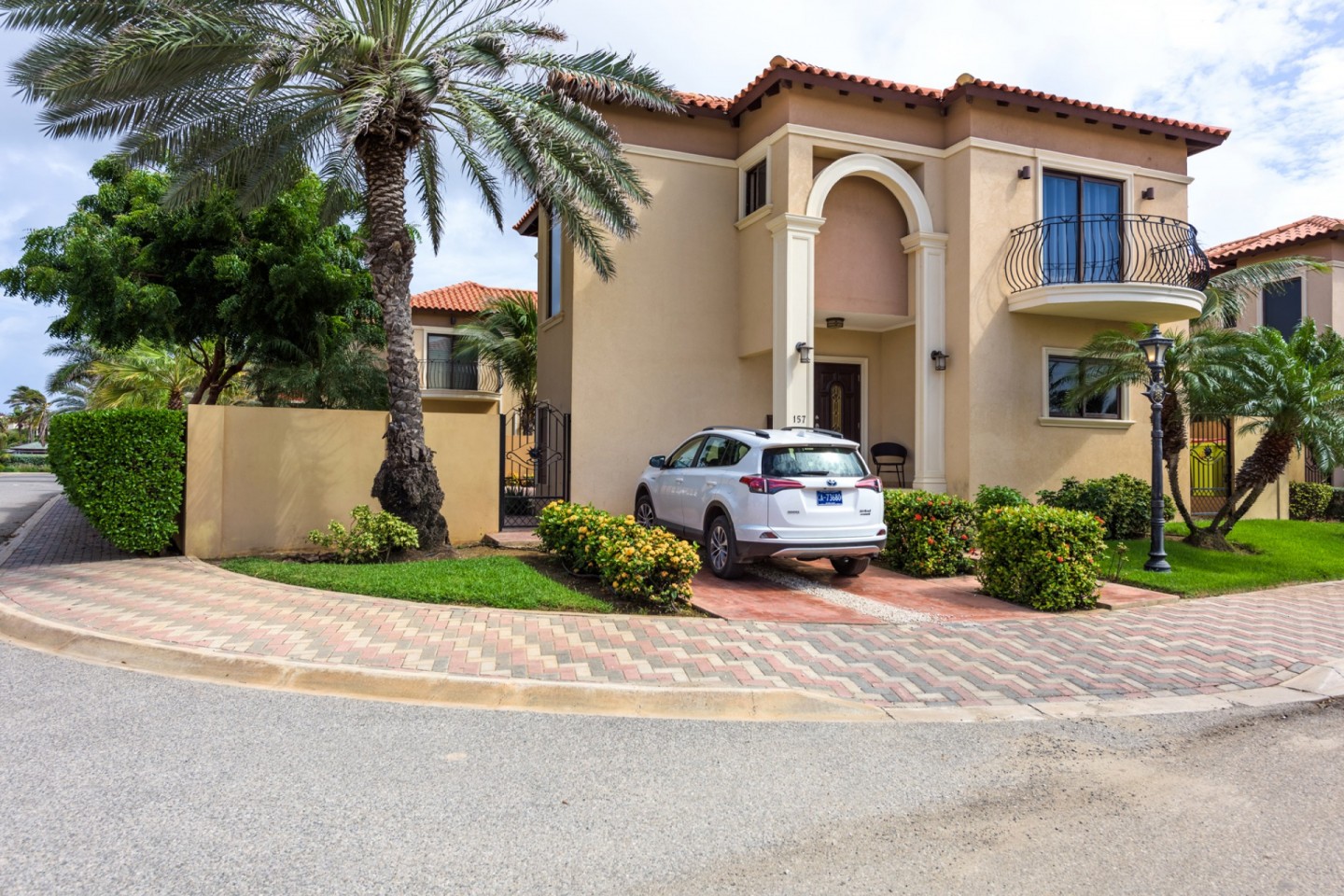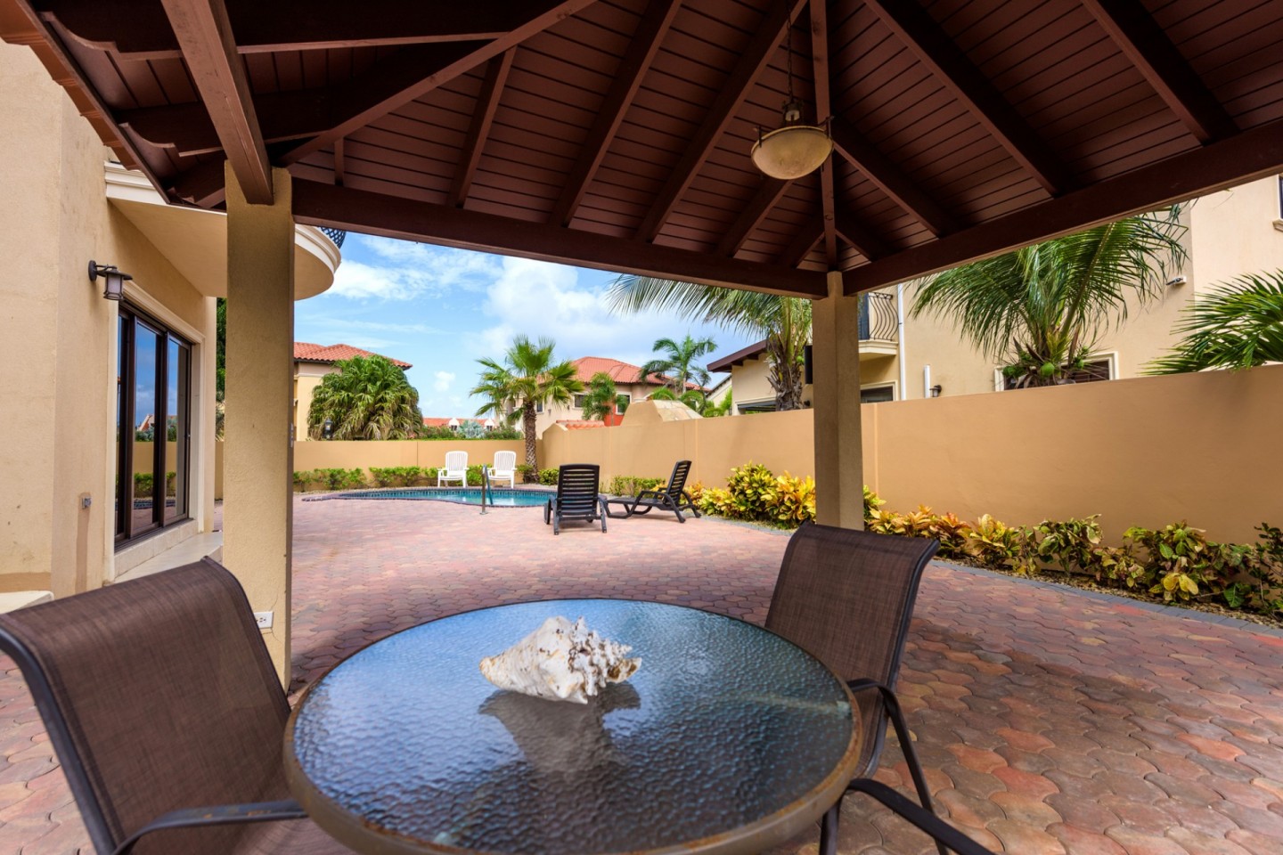 The best part of this villa is the private patio fenced with a 2 meter high wall and iron cast gates on both sides of the house. Fully paved and nicely landscaped with decorative trees and plants. The patio is the perfect spot to host gatherings with family and friends. Enjoy a swim in the 15 m2 pool or sit and relax under the 16 m2 gazebo. Additionally, Gold Coast offers a range of amenities such as community pools with cabanas and a shared BBQ area, a fine dining restaurant, gym, tennis courts and much more. Diamante 157 is just a walk away from the gated community's clubhouse. Located in Malmok; one of Aruba's famous high end neighborhood. Just minutes away from the beast beaches as well as shopping, dining, and entertainment areas.