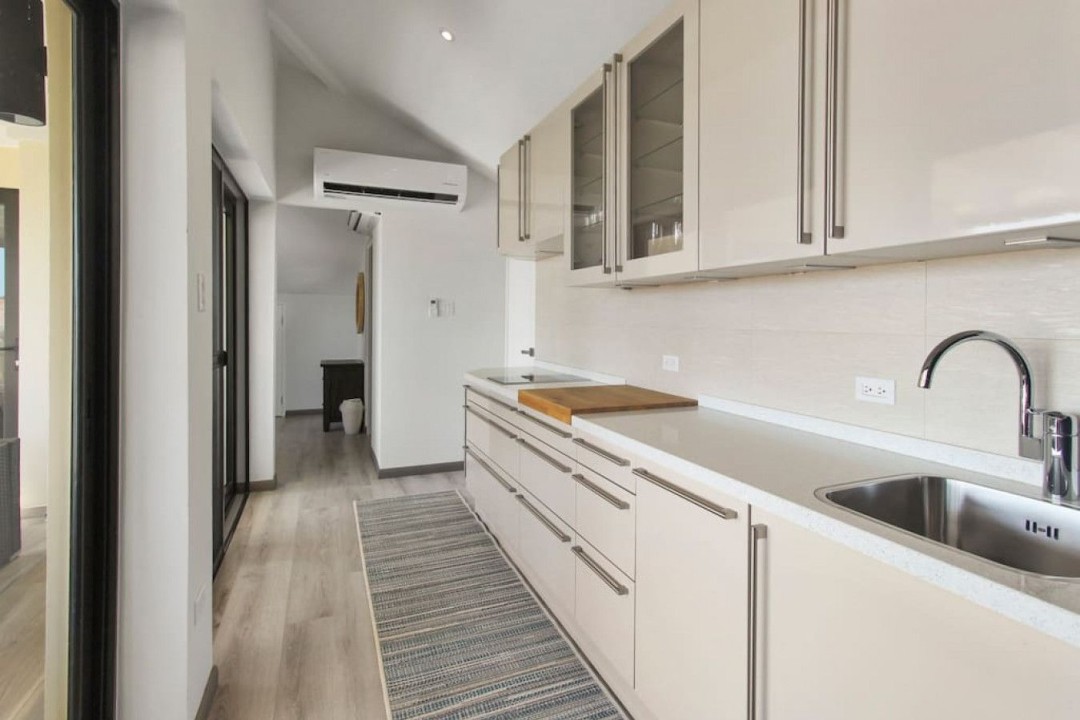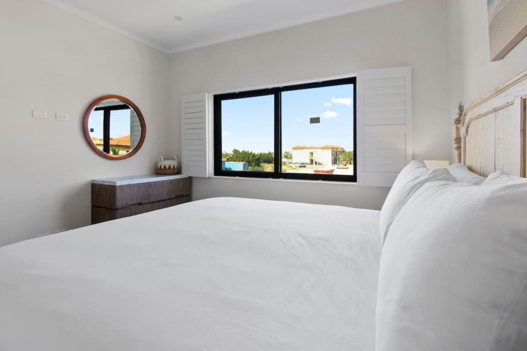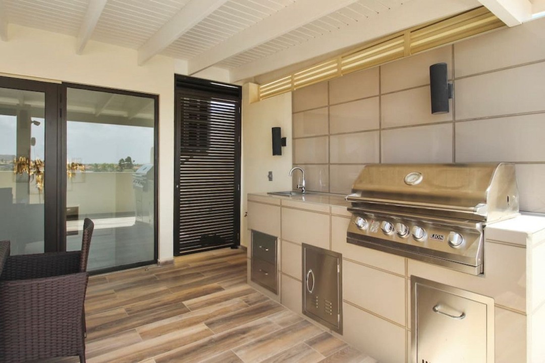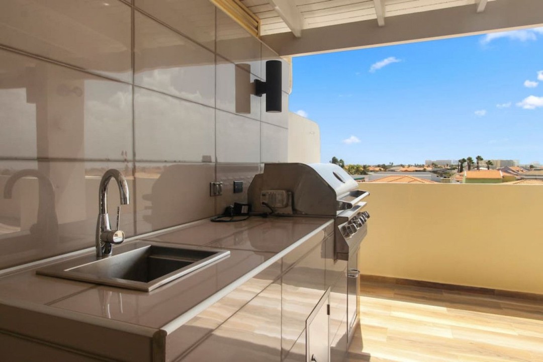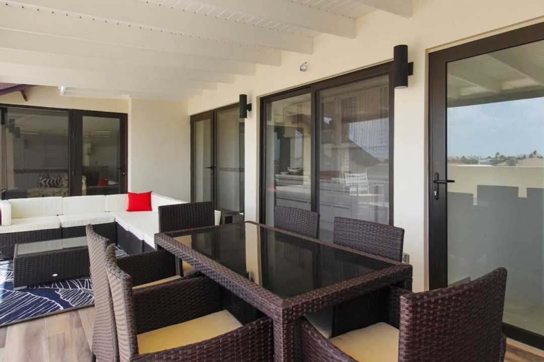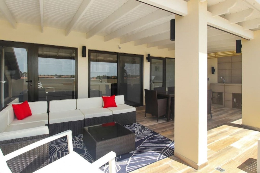 As you enter, the tasteful decor, high-end furnishings, and warm ambiance reflect Aruba's spirit. The open-concept living area is perfect for relaxation, and the kitchen is ideal for culinary enthusiasts. The private terrace offers alfresco dining and a view of Aruba's gentle breeze.