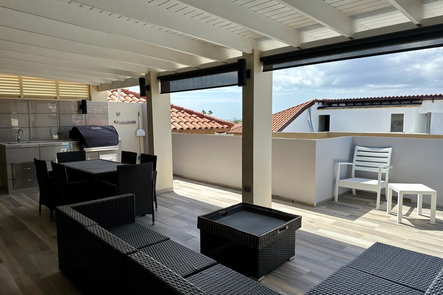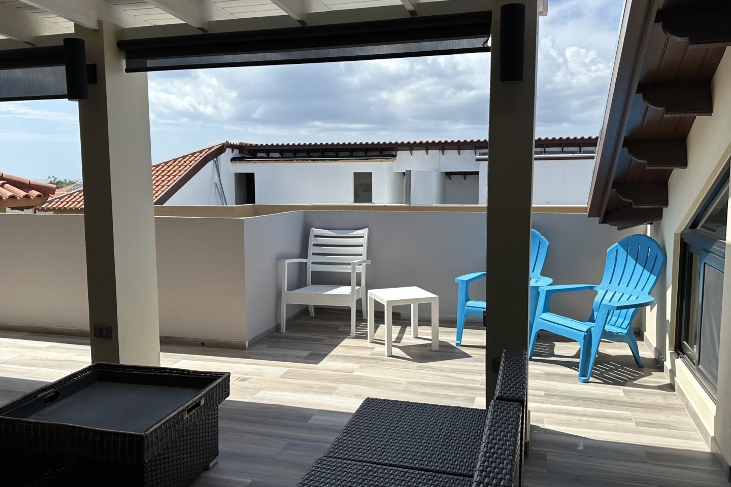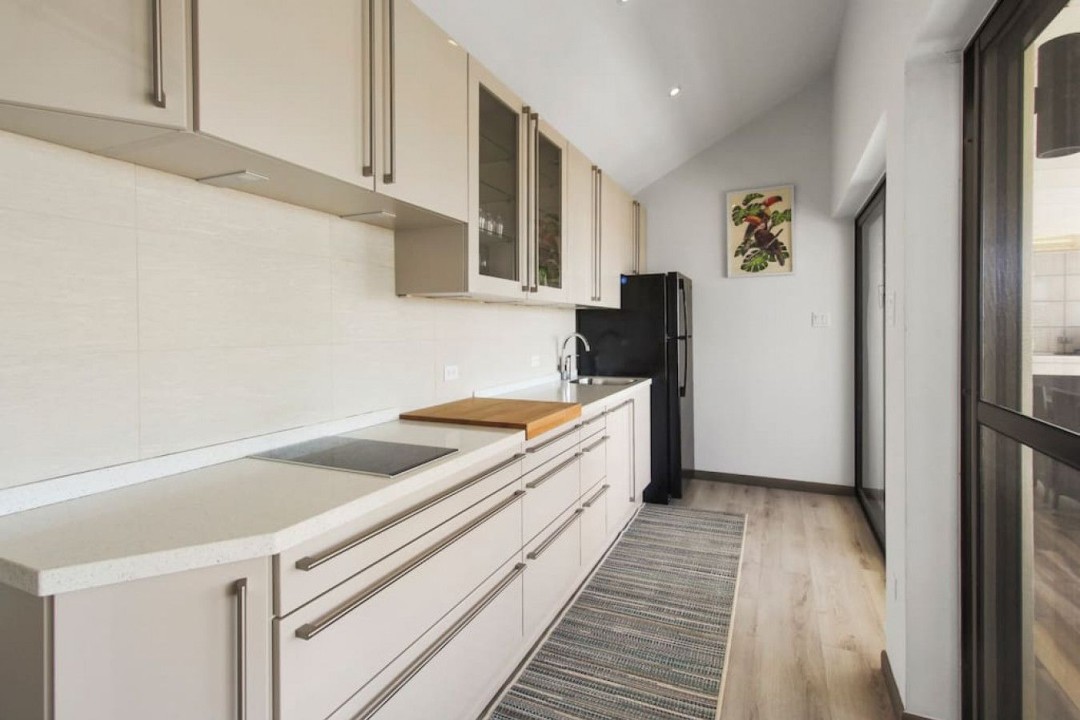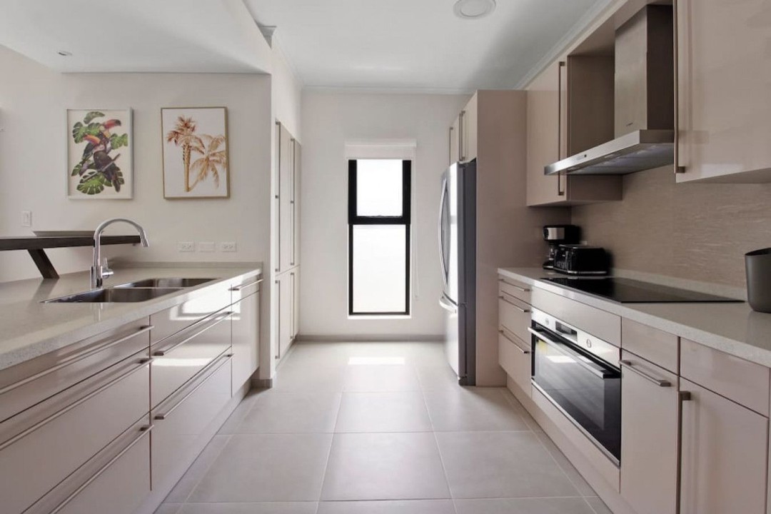 As you enter, the tasteful decor, high-end furnishings, and warm ambiance reflect Aruba's spirit. The open-concept living area is perfect for relaxation, and the kitchen is ideal for culinary enthusiasts. The private terrace offers alfresco dining and a view of Aruba's gentle breeze.