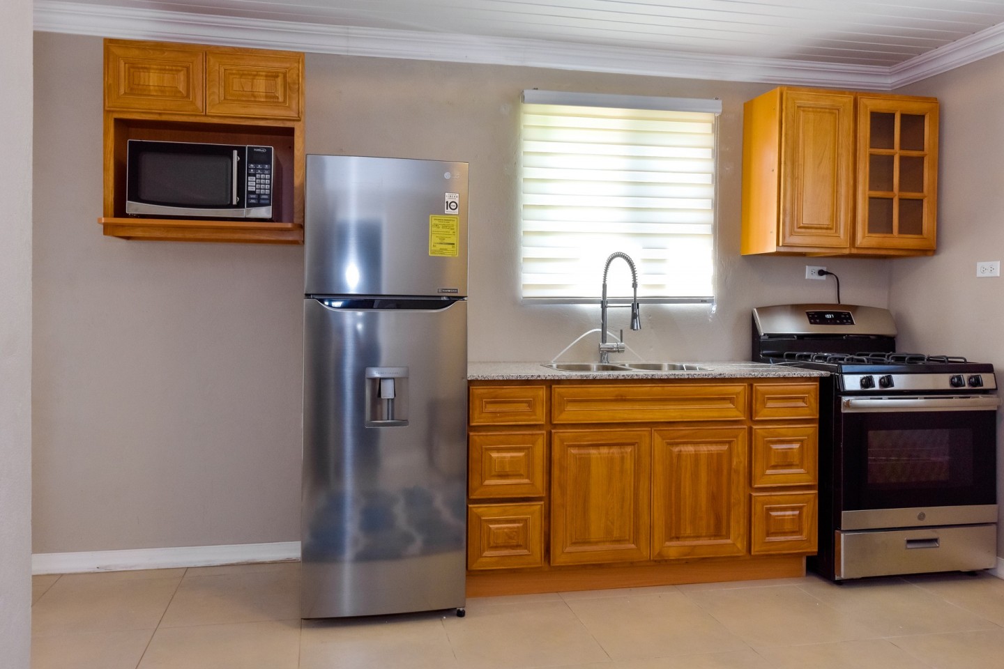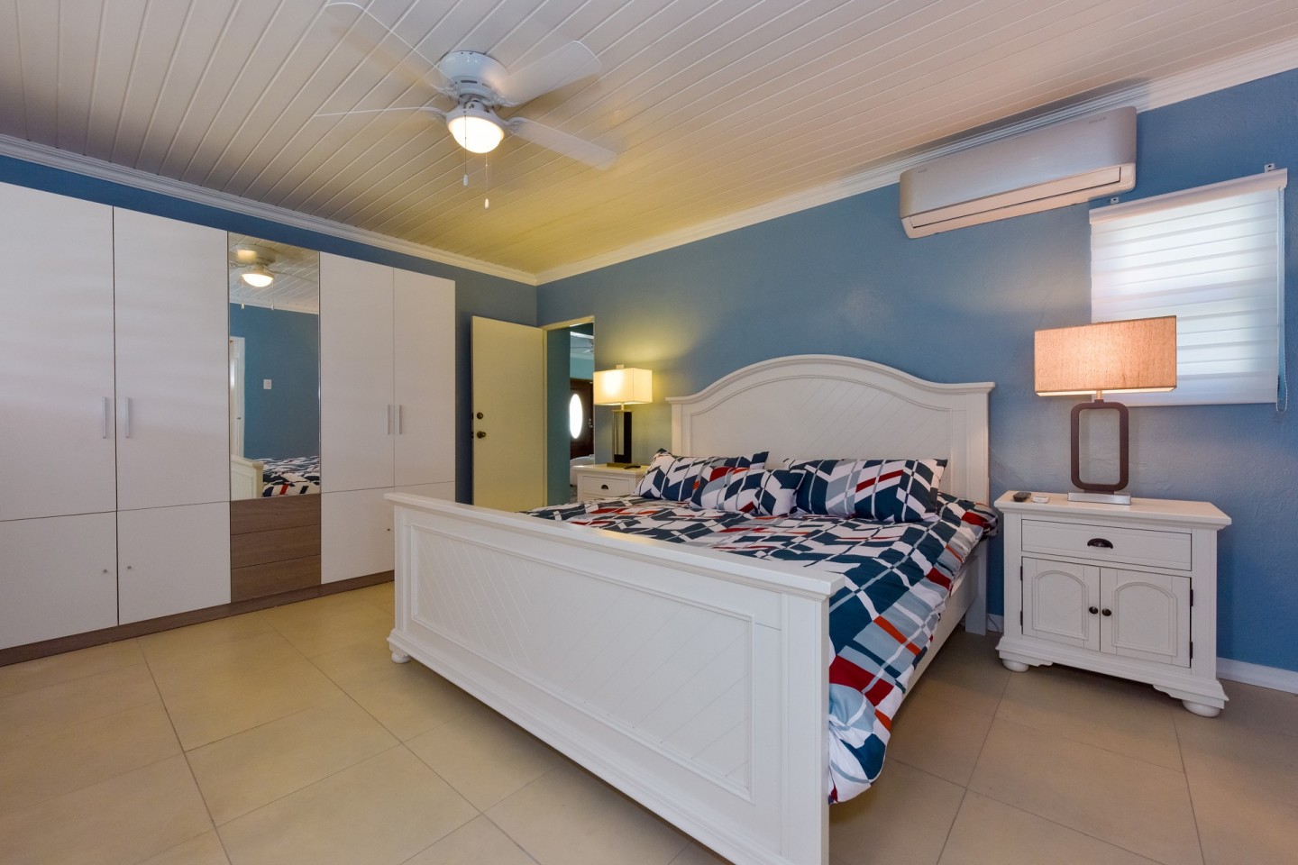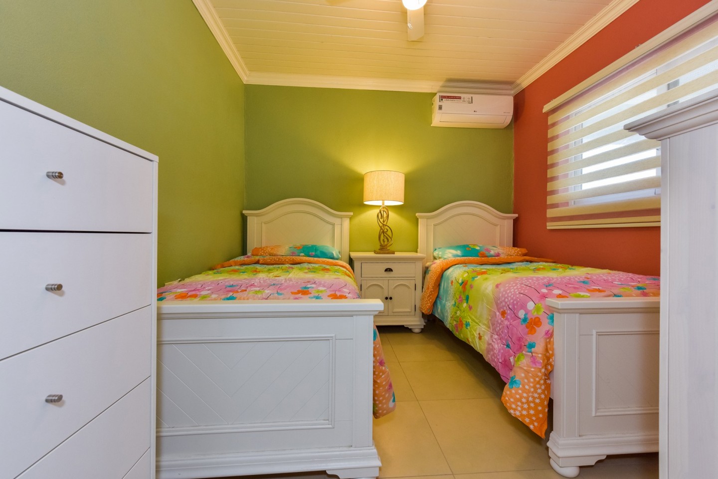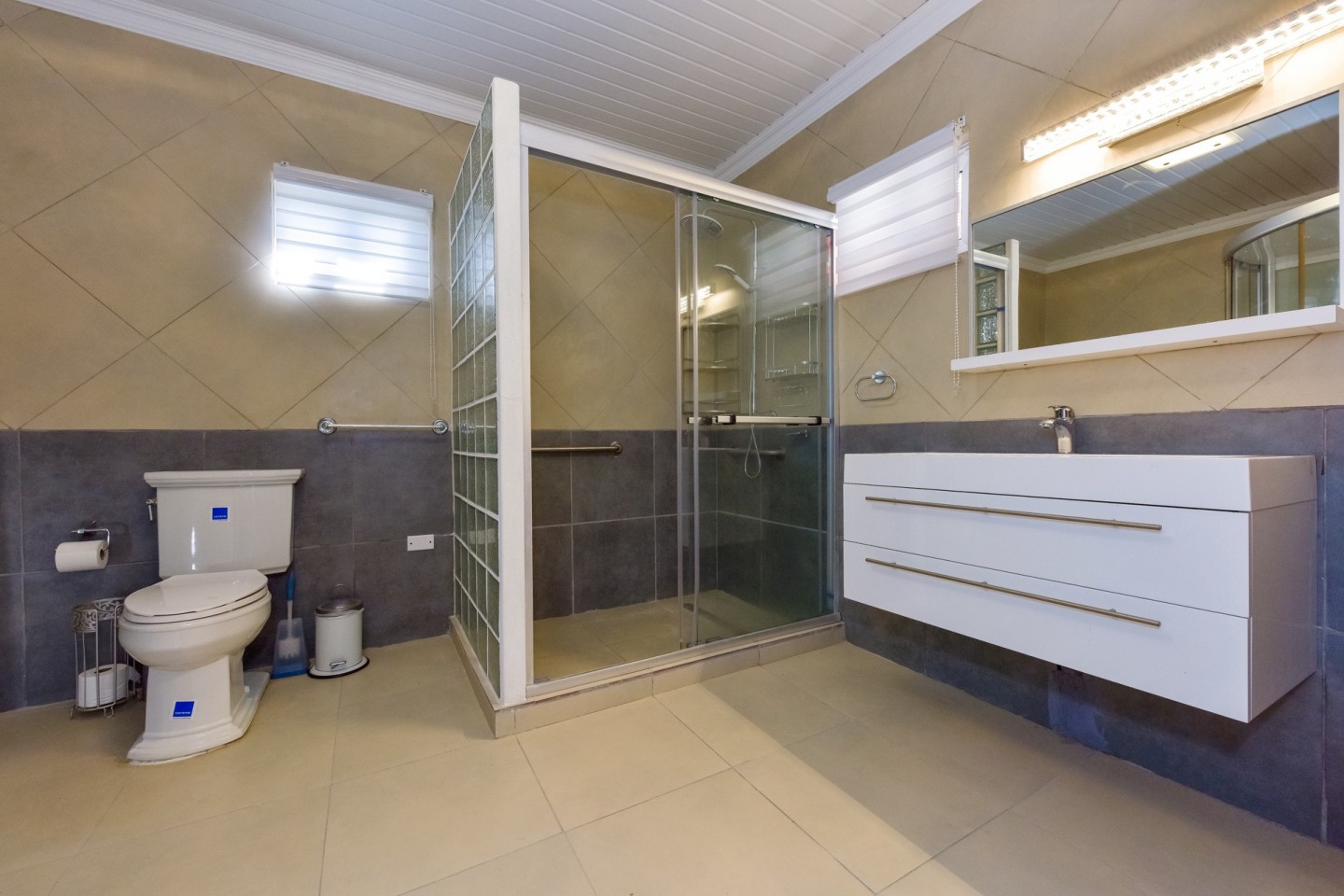 This brand new listed villa is located in the prestigious neighborhood of Esmeralda, just minutes away from Aruba's most beautiful beaches in Malmok. It's only 65 feet from the Gold Coast, and one block away from Golf Course. The fully furnished villa has five bedrooms, three bathrooms a spacious open concept living and dining room which opens up to the kitchen. Upon entering the home you will be greeted by a beautifully furnished living area featuring modern design in mellow colors which brings you a warm feeling the second you enter the space. The kitchen comes fully equipped with stainless steel appliances and beautiful countertops. On the left side of the home you will find the master bedroom with an ensuite that has a jacuzzi a double sink and a huge shower as well. Next to the master bedroom, you have a second bedroom that also has lovely mellow colors and a queen sized bed and a built in closet. There are two more bedrooms on the right wing of the villa, one of which has a separate opening to the backyard, and the other one to the front of the house. The one connected to the backyard can also be rented separately long term or as a short term rental because it has its own fully equipped kitchen and laundry room. Walking out of the villa you have these beautiful modern doors that lead to the fully furnished patio which has its own dining area and lounge chairs where you look out on beautiful large pool, that has built in spotlights that change colors at night.