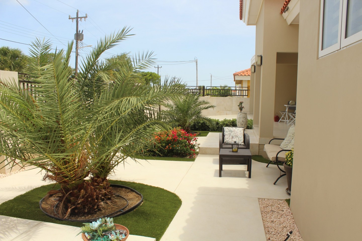 This home is self efficient with Solar panels, split air conditioners in all rooms, security systems, and an electric gate, complimented by it's modern lush low maintenance landscaping.