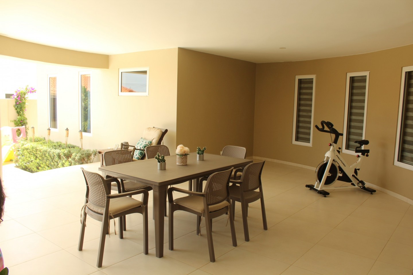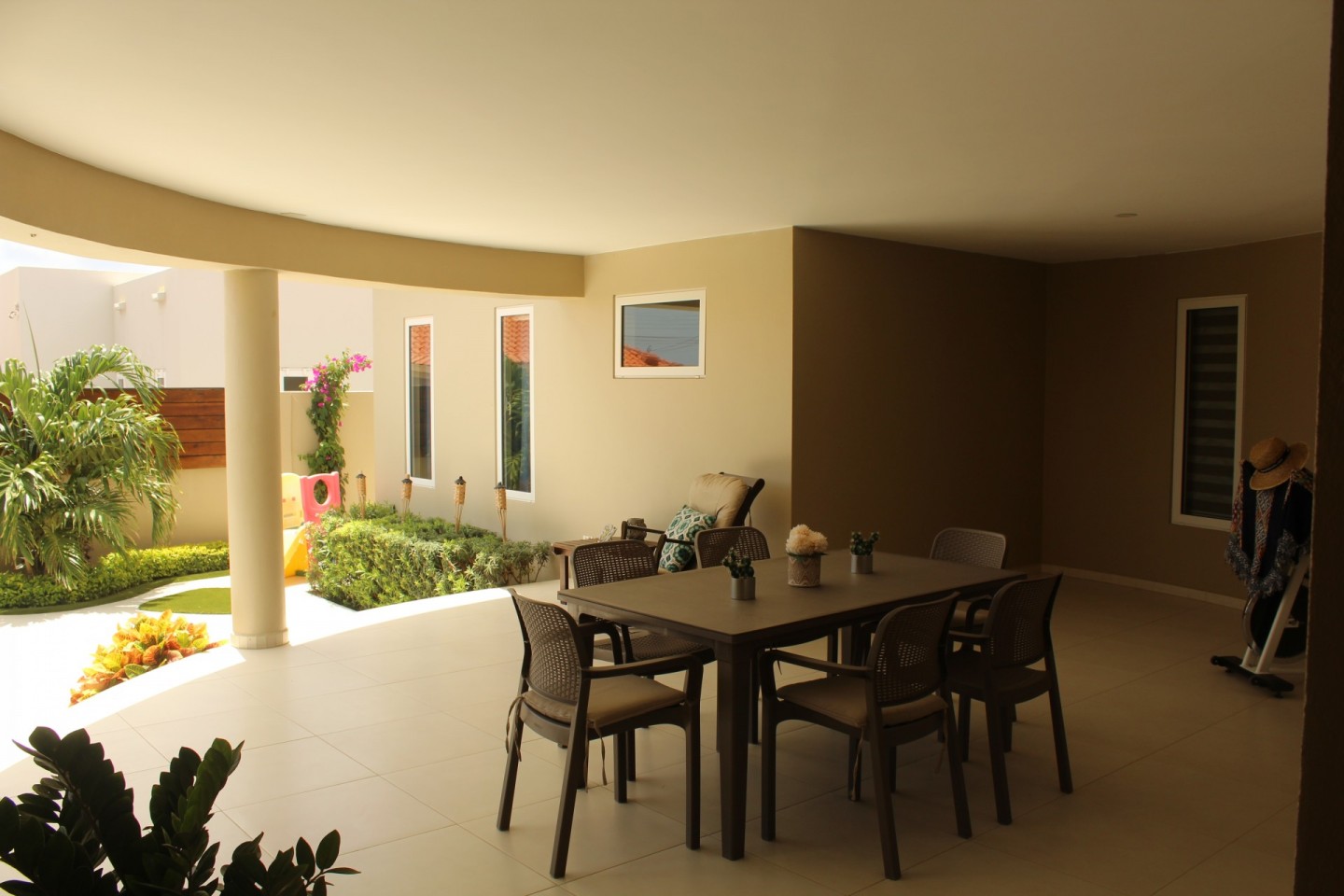 At the terrace there is also a half bathroom and a beautiful garden with enough space to place a large hot tub or small pool, which makes this area a wonderful place for entertainment and family gatherings.