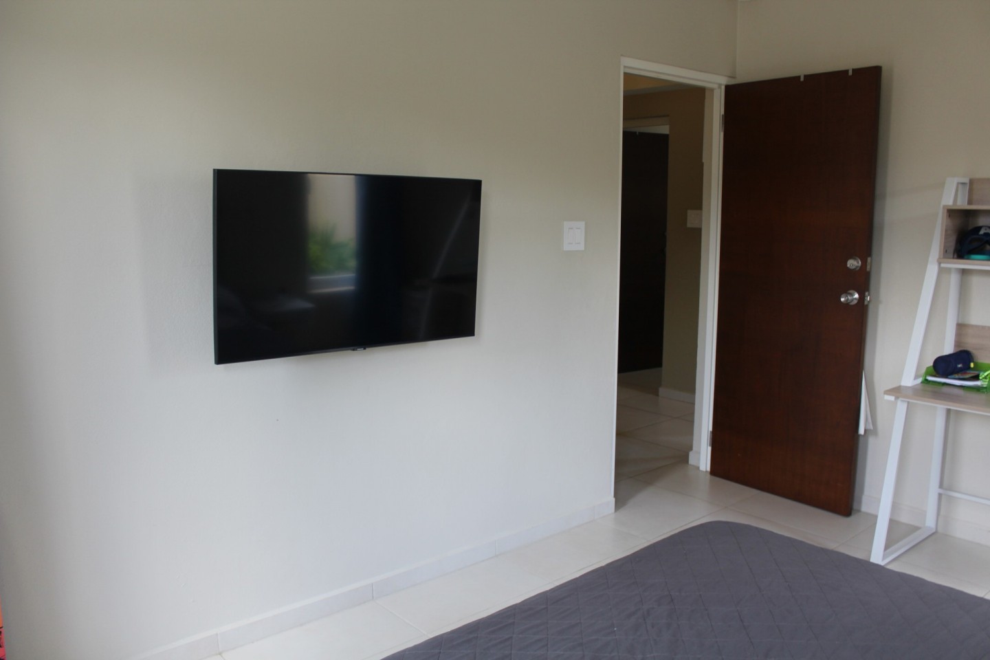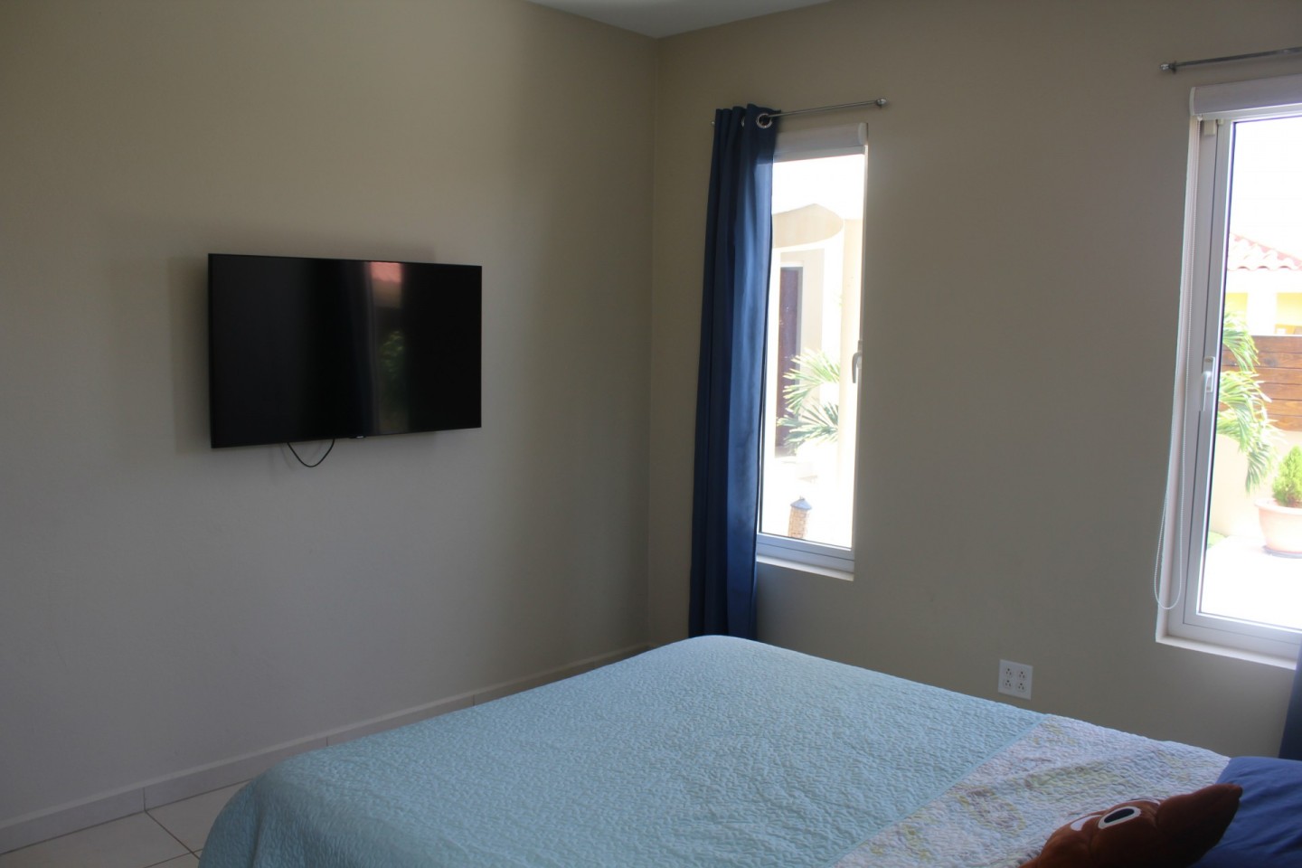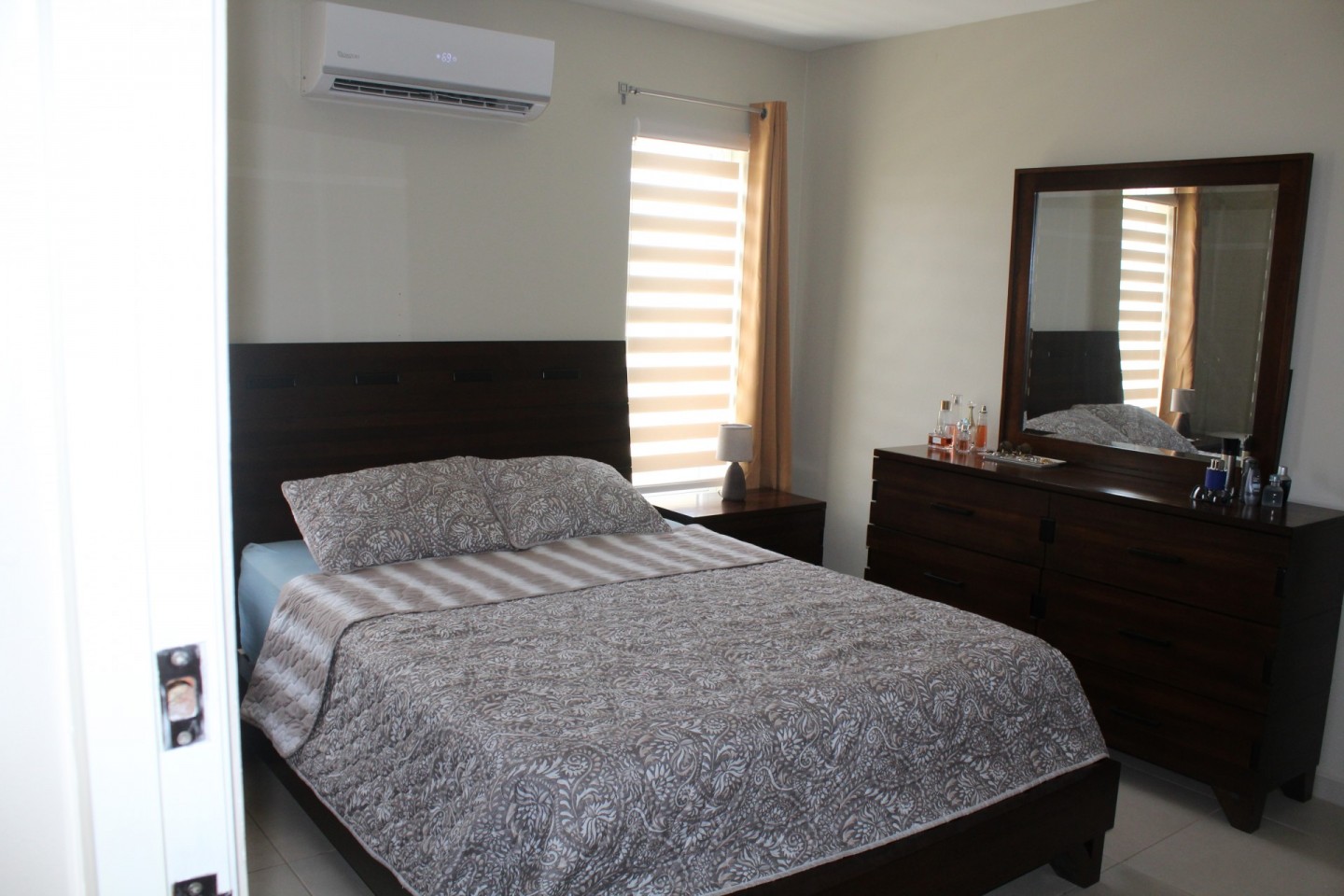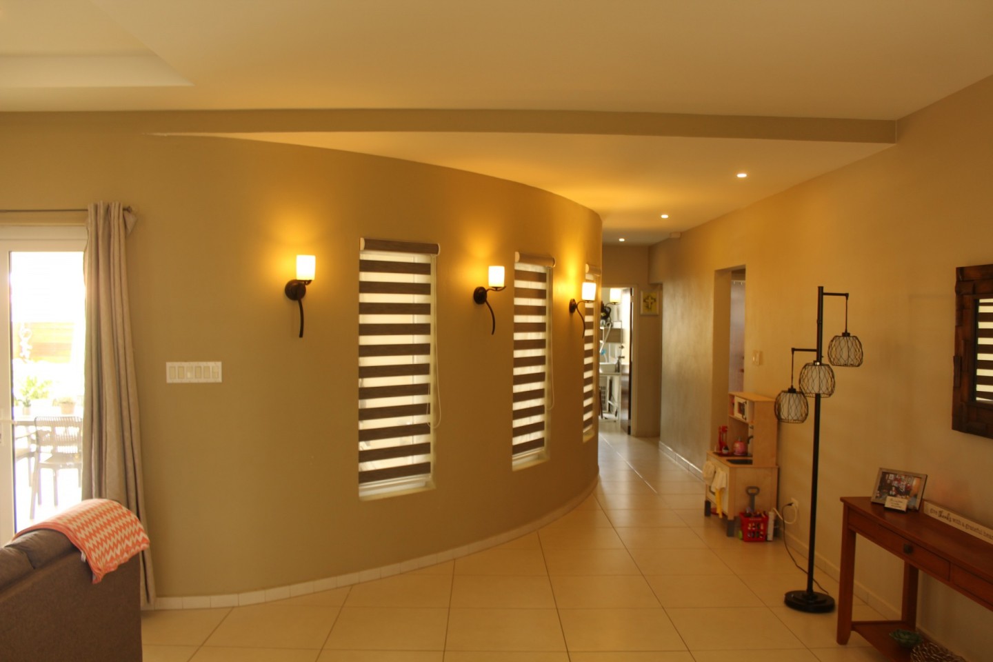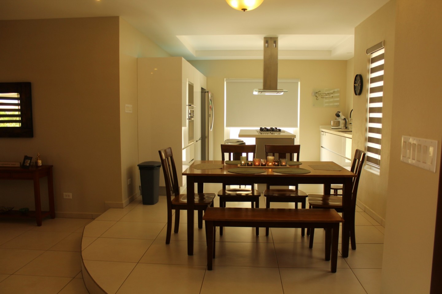 Upon entering the home you are welcomed by an open concept living room that looks out through double insulated glass harmonica doors onto the terrace.