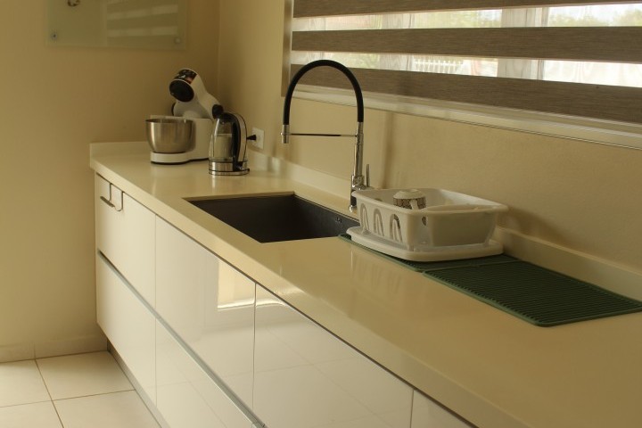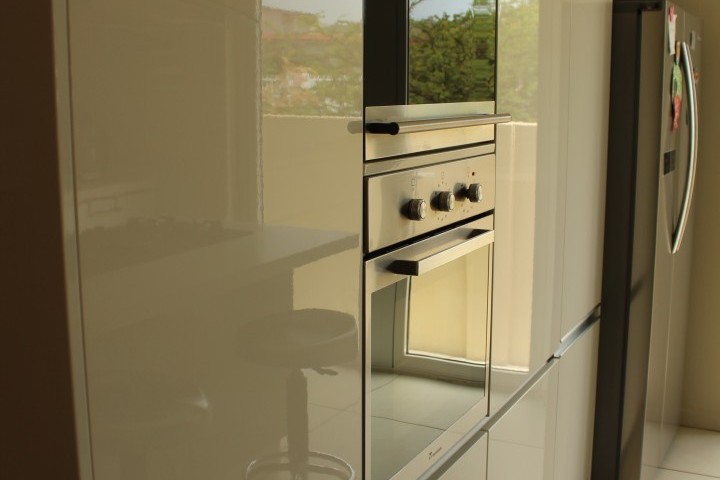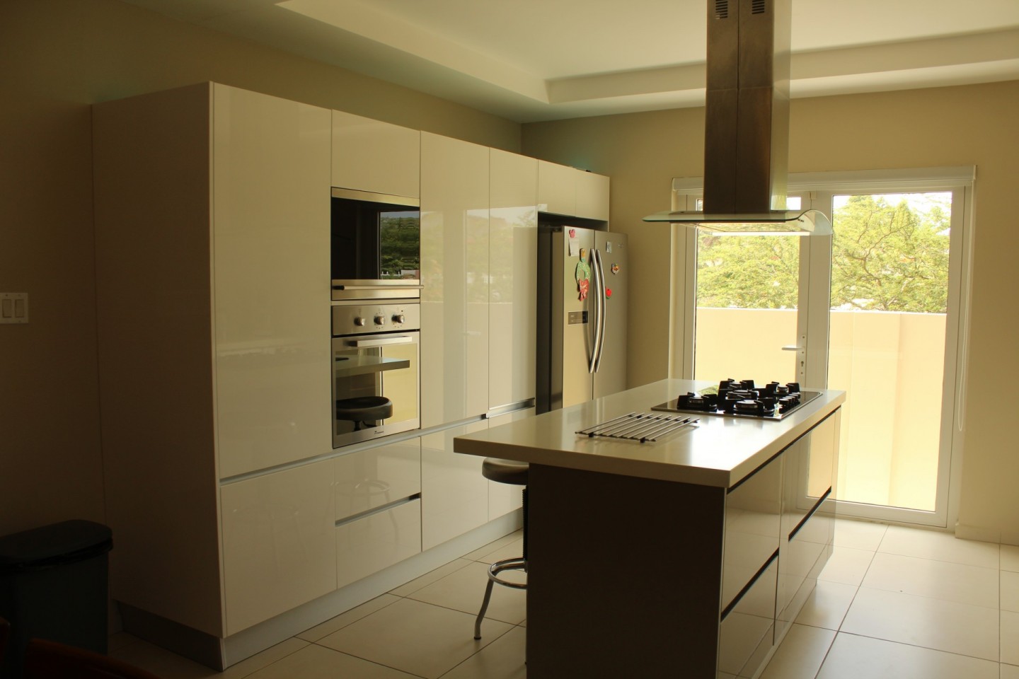 To the right of the living room you step up into the modern fully equipped kitchen built in dishwasher cabinet but needs a dishwasher. The kitchen is complimented with quartz countertops and stainless steel appliances.