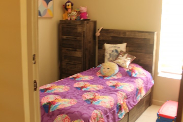 There is 1 bedroom and a full bathroom located on the left side at the end of the hallway towards the rear of the house.