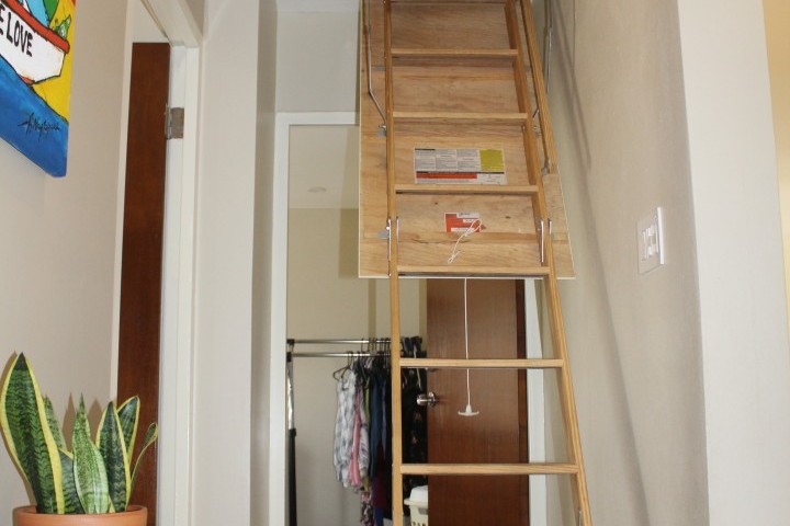 On the right side of the hall equipped with a pull down staircase and full attic there are 2 bedrooms and a master bedroom and master bathroom.