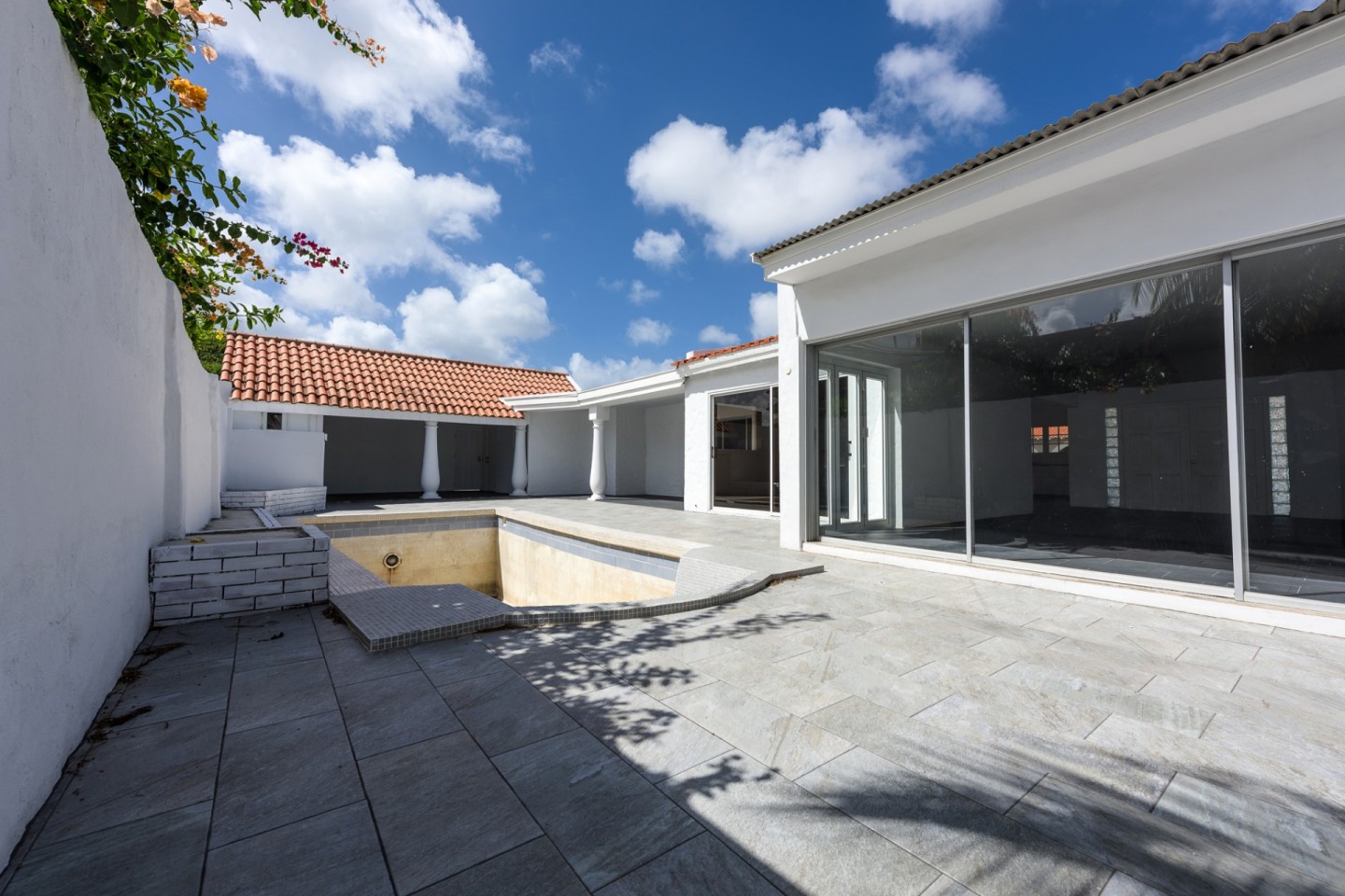 Beautiful villa built on lease land measuring 1215m2 (13078.15 sq ft) in the well-known area of Mon Plaisir, just a few blocks from the shore. Entering this wonderful five-bedroom estate, you will find yourself in a recently renovated open space living room which leads you to the modern renovated kitchen which extends to a large breakfast/dining area. Throughout the whole villa, there are ample windows that brighten the interiors with natural light. The living room is defined by extensive glass sliding doors which open to the breezy large covered porch and swimming pool providing captivating sights. Outdoors on the breezy covered porch, you will be able to enjoy a resort-style swimming pool with sun shelf and spa. The possibilities for a bar and BBQ area, sunbathing, and much more are endless on this secluded terrace. Furthermore, the master suite is complete with an exclusive master bath and walk-in closet. All new modern windows, two separate guest rooms with both a private bathroom, courtyard service entrance, two-car garage, custom ceiling trays, and designer details can be seen throughout the house, making this estate a unique and wonderful opportunity. This magnificent property is a very good opportunity to set up your own local business as it has an extra substantial piece of land of 468m2 (5037.51 sq ft) where you can use it as a parking space or extra small offices. Call us now for more information!