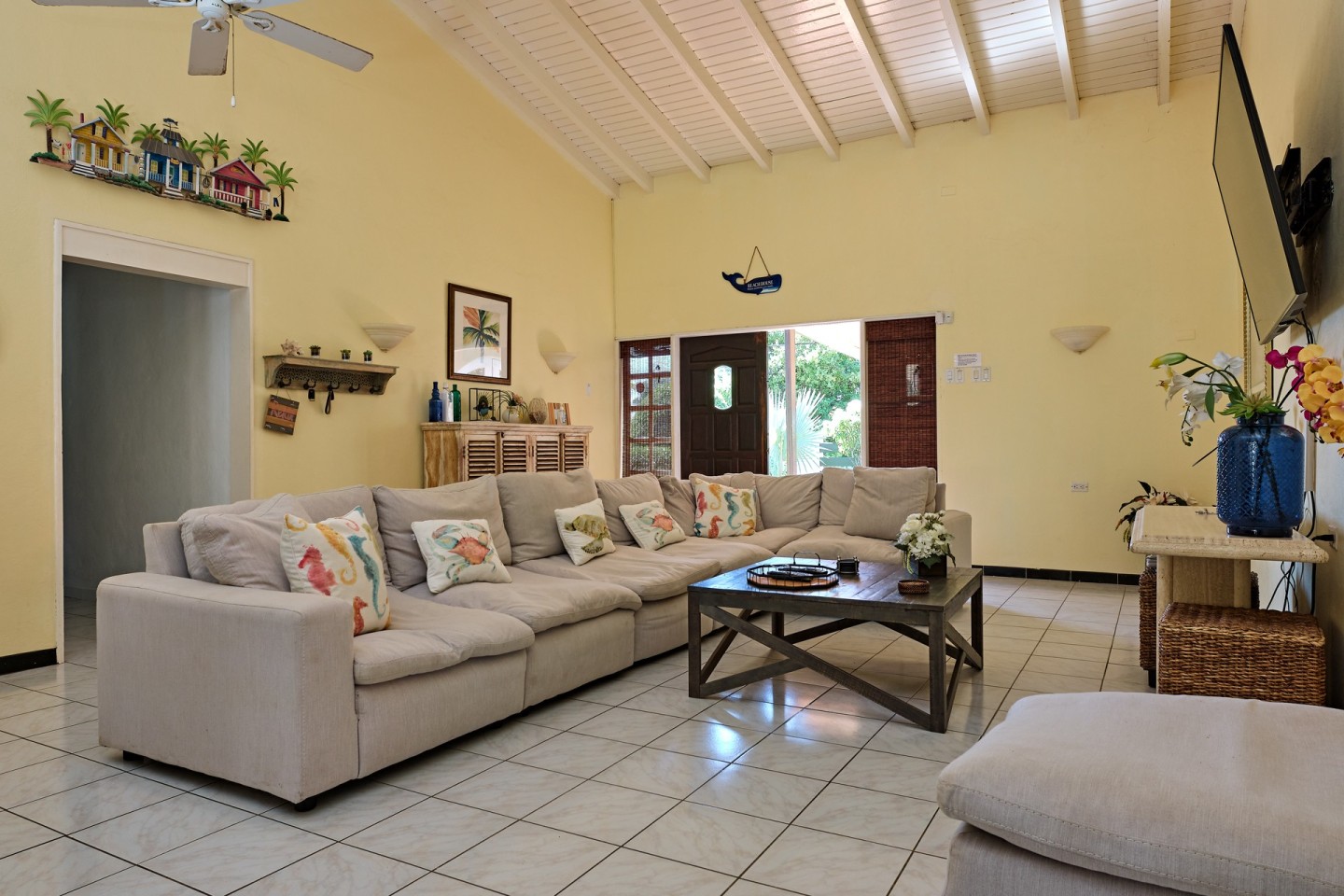 Discover the ultimate beach retreat with this magnificent villa located just a few steps from some of the world’s most beautiful white sandy beaches and clear blue waters, Tres Trapi and Boca Catalina. This luxurious property offers four bedrooms, plus two private guest suites with ensuite bathrooms, and at total of six bathrooms. The master bedroom boasts a walk-in closet and ensuite bathroom and has access to the amazing covered patio.