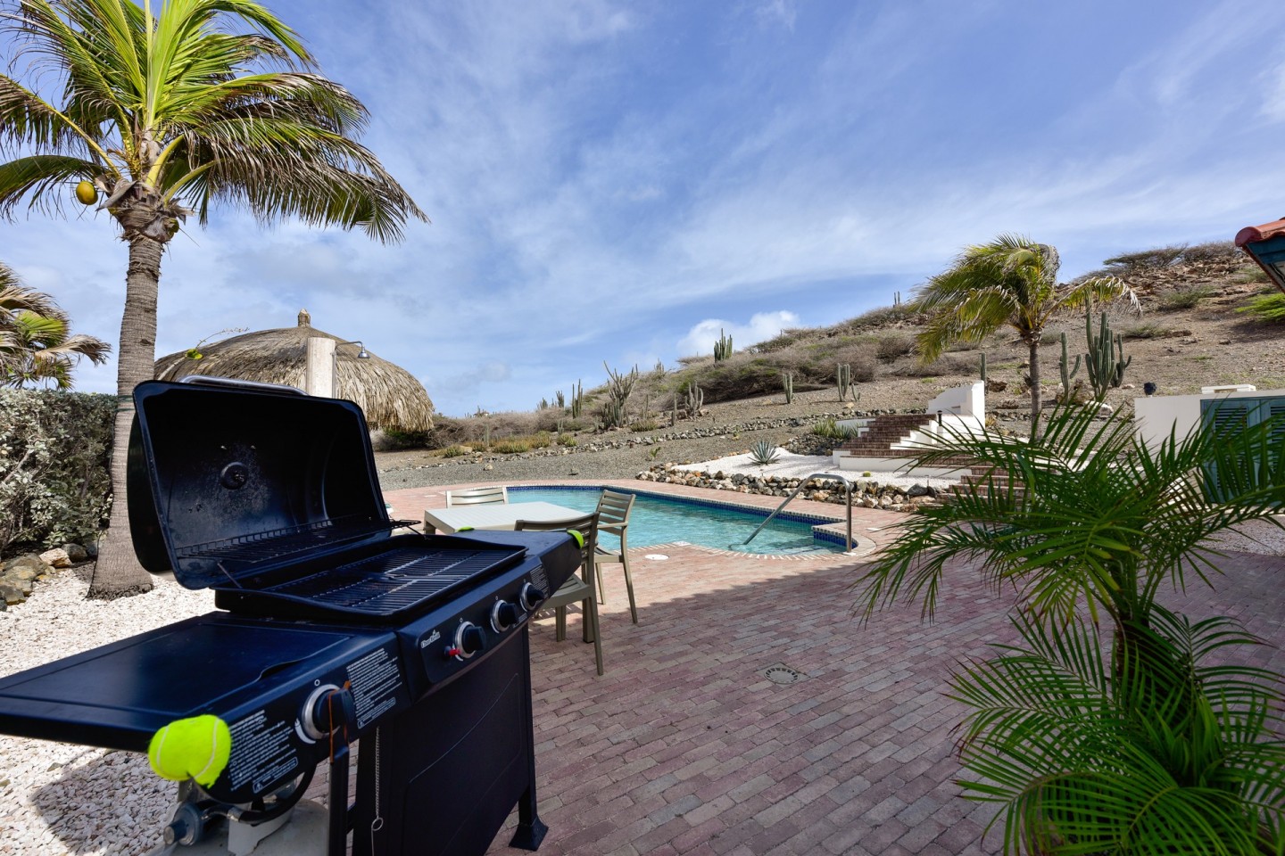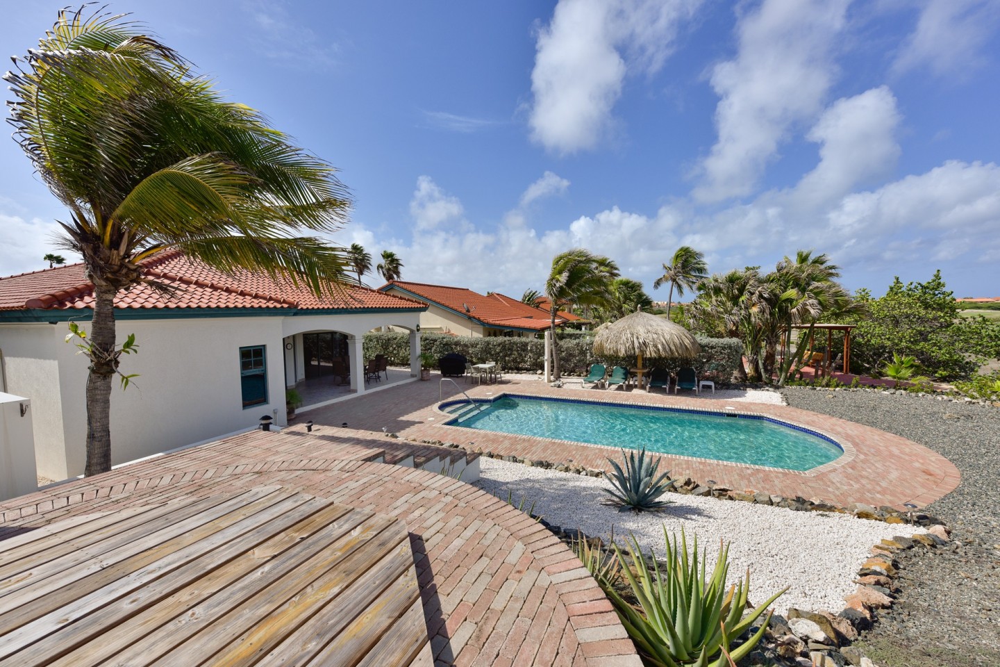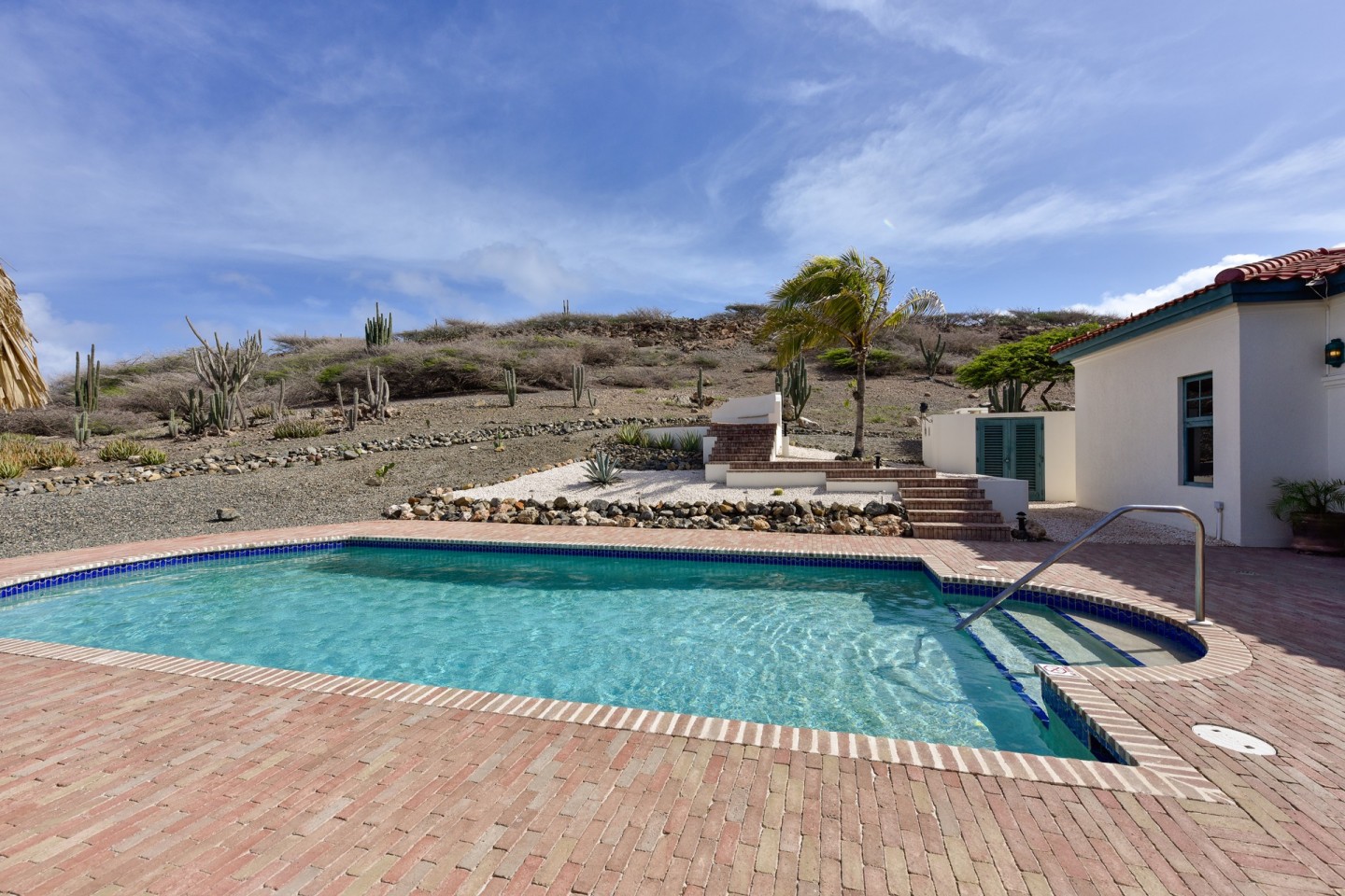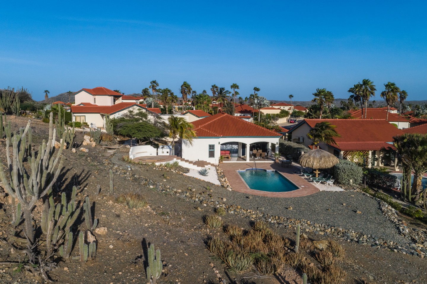The master suite with access to the covered backyard offers a large bedroom , ensuite bathroom and a walk-in closet. The two other bedrooms are situated on the front side of the house and share one bathroom. The tropical backyard will be the place to relax during the day where the pool and spa awaits you. This villa is in excellent condition and will be sold completely furnished.