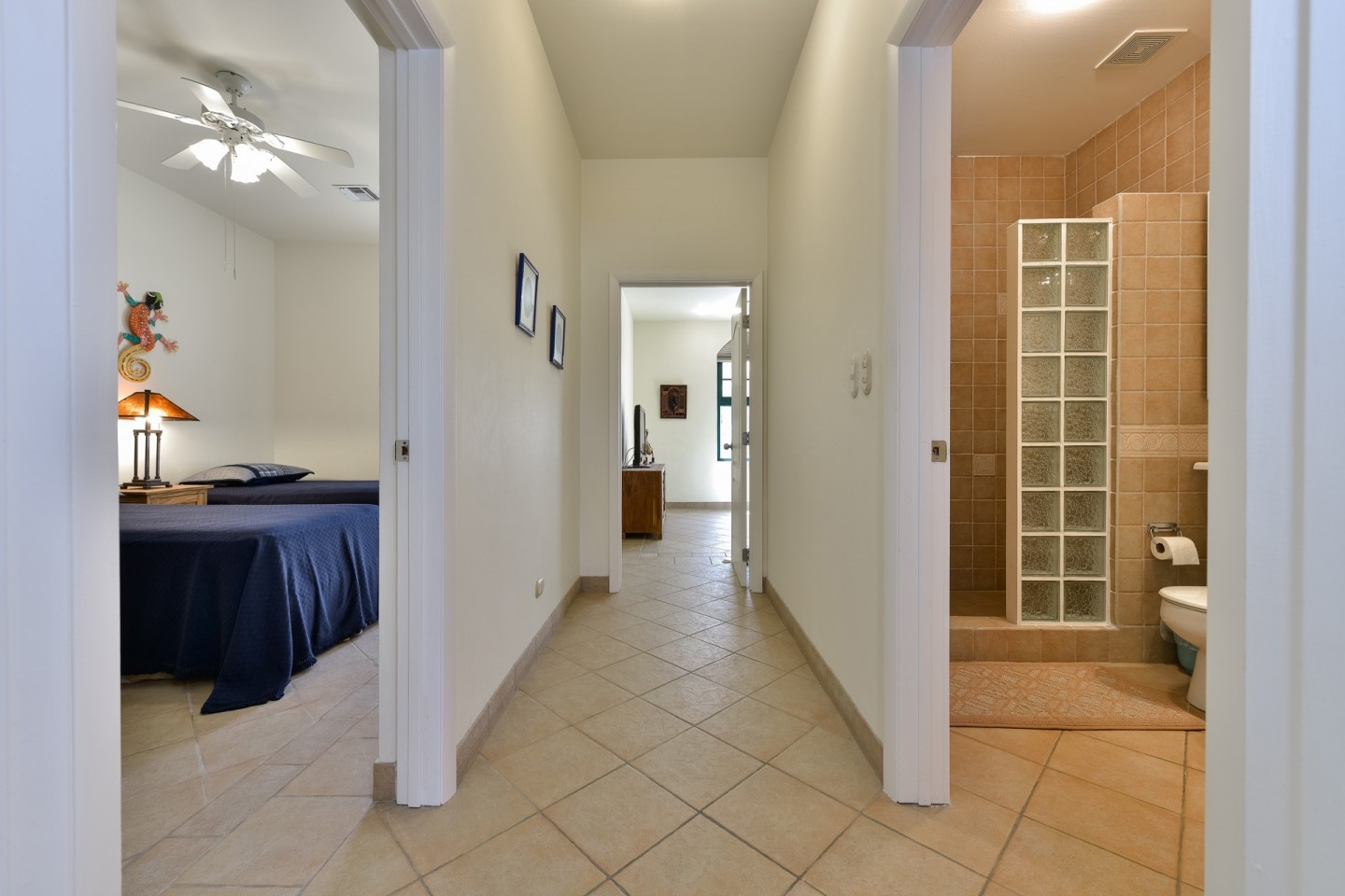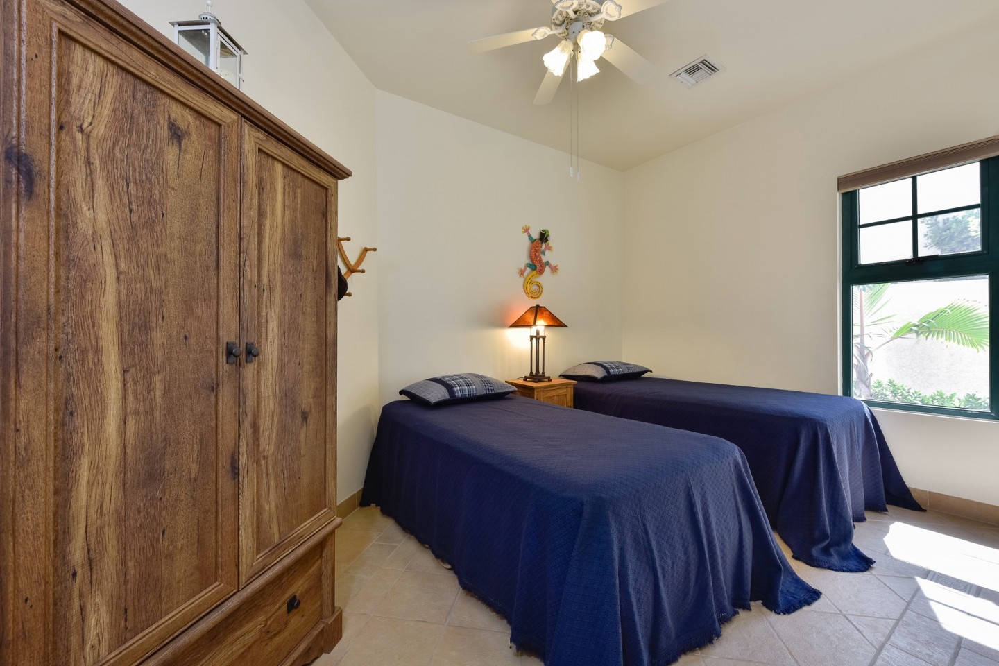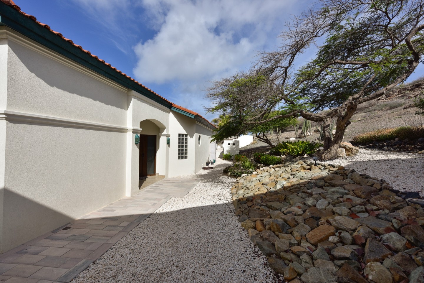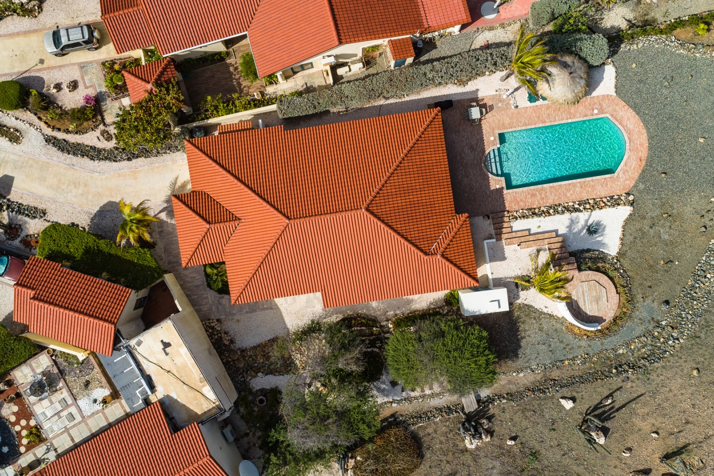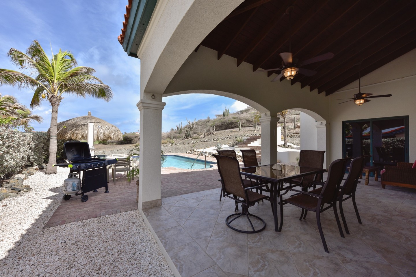 The master suite with access to the covered backyard offers a large bedroom , ensuite bathroom and a walk-in closet. The two other bedrooms are situated on the front side of the house and share one bathroom. The tropical backyard will be the place to relax during the day where the pool and spa awaits you. This villa is in excellent condition and will be sold completely furnished.