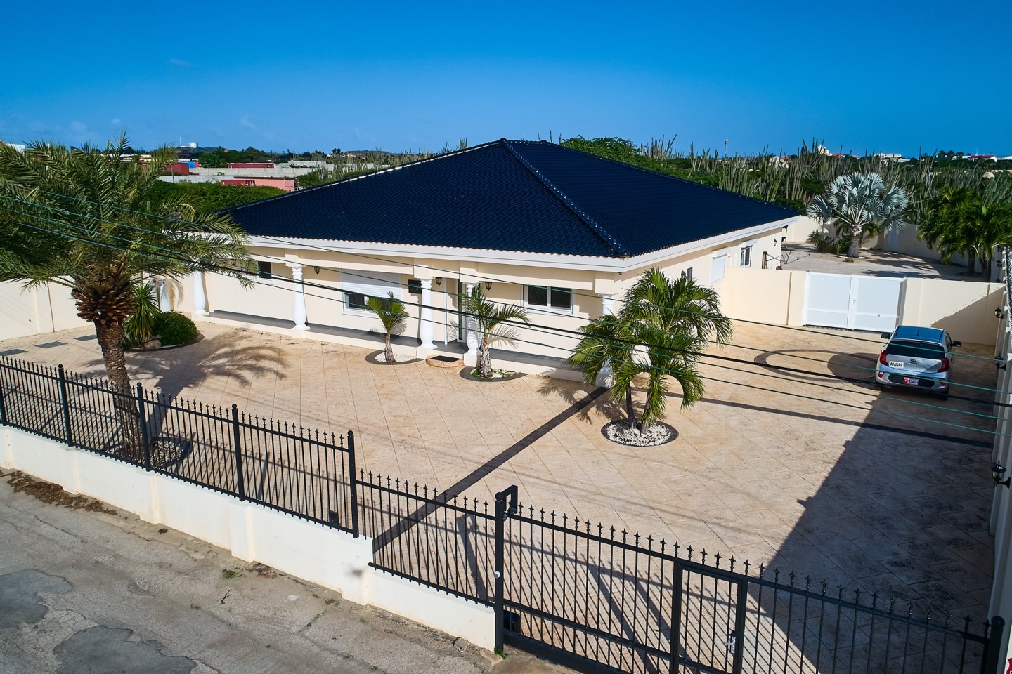 Located between Paradera and Tanki Leendert area, you will find this amazing contemporary villa. Featuring four bedrooms, three bathrooms, open concept living and dining area, fully equipped modern kitchen, laundry/storage room, pool and spacious covered patio. The villa is impeccably maintained, fully fenced and boosts 303 m2 sitting on 3.460 m2 of property land.