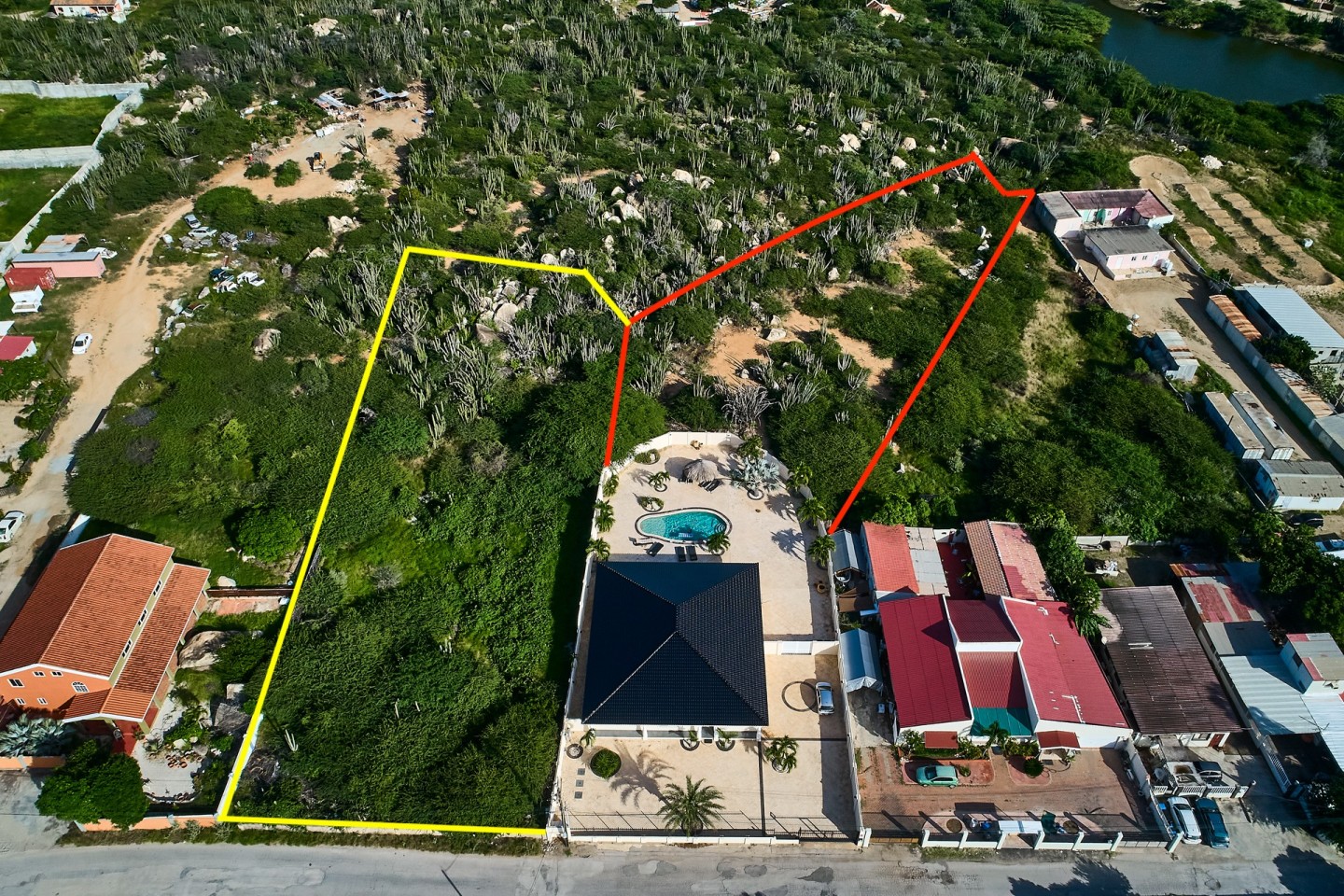 Next to the residence is another piece of property land of 2,170 m2 marked in yellow. This piece of property land can be bought together with this residence for a great deal.