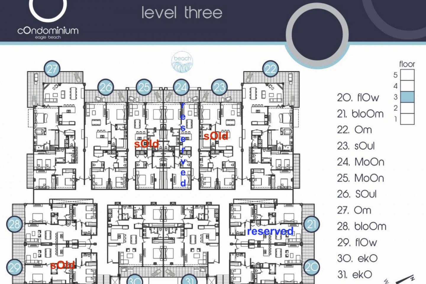 - Level One: Unit 3 (Om) cOrner beach view - 4 bedrooms, 3.5 bathrooms of 256 m2 - $1,184,900.00