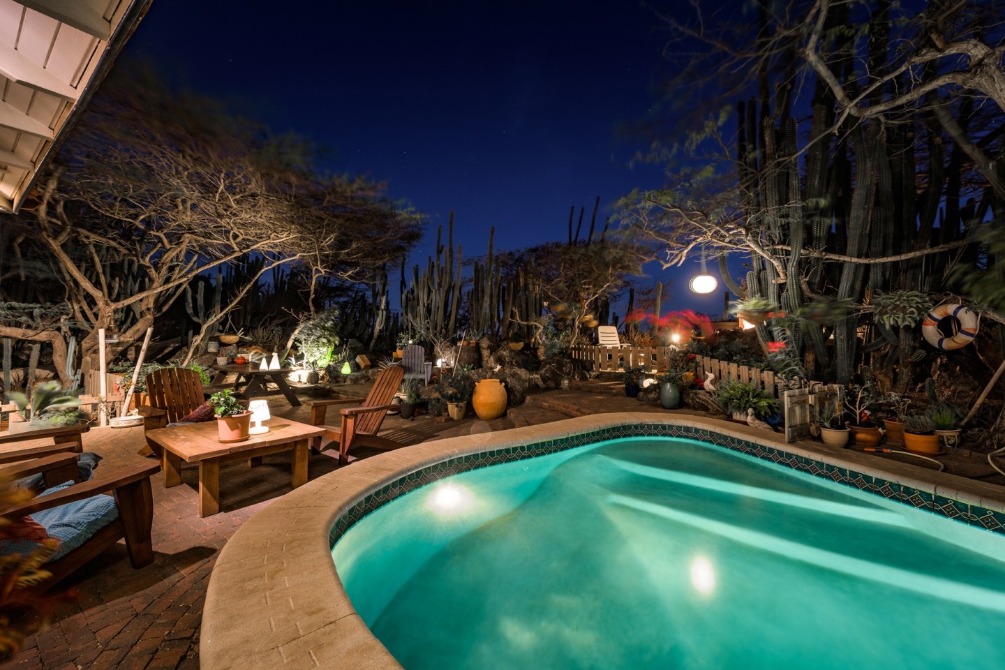 Located in the tranquil neighborhood of Sero Preto you will find this 2-story contemporary styled home with an island flair surrounded by Aruba's incredible nature. Featuring 4 bedrooms, 3,5 bathrooms, indoor/outdoor living space, modern kitchen, pool and covered terrace with seating.