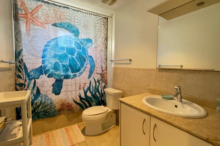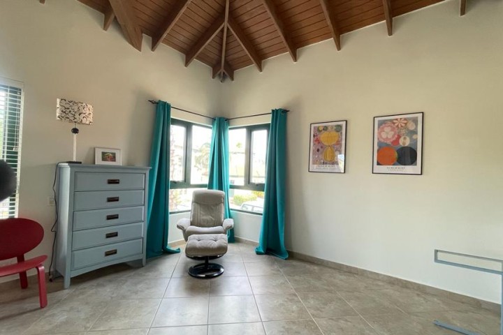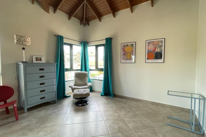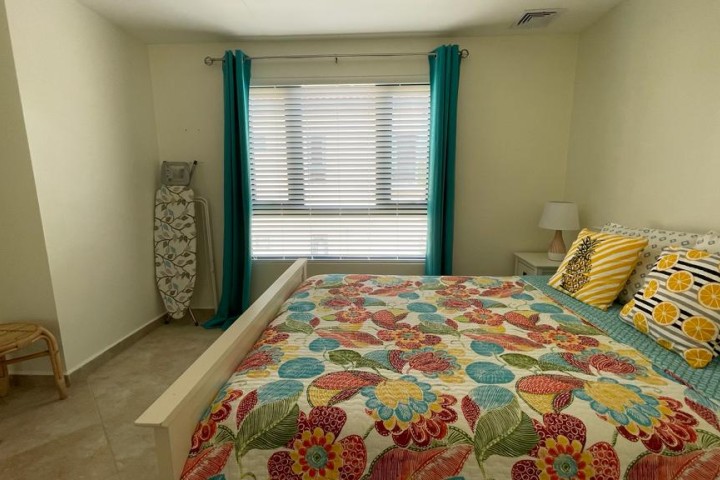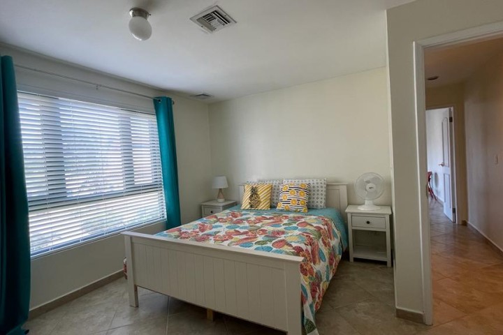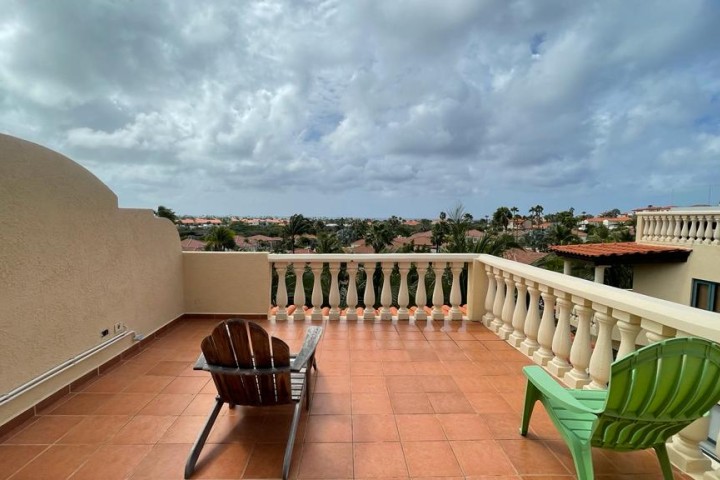 Entering this attractive condo you'll find an open space concept where you will find the living room with dining room with a well-equipped kitchen with stainless steel appliances ,wooden cabinets and a granite countertop finish. Adjacent to the kitchen, you will have the laundry room with your own washer & dryer combo as well as the half bathroom. This amazing unit offers 3 bedrooms, making one of them the master bedroom with its own ensuite bathroom and built-in closet, whereas the other two bedrooms share the 2nd bathroom. The master bed room and the living room have balcony to enjoy outdoors. Furthermore it has its own deck to enjoy the sun and breeze of Aruba, next to the deck there's a room with a 1/2 bathroom that can be used as an office , bar, or another room .Outside you will find a well-maintained and good-looking green garden for your comfort while enjoying the view and the breeze that Aruba offers. The house has full air conditioning and includes its appliances.