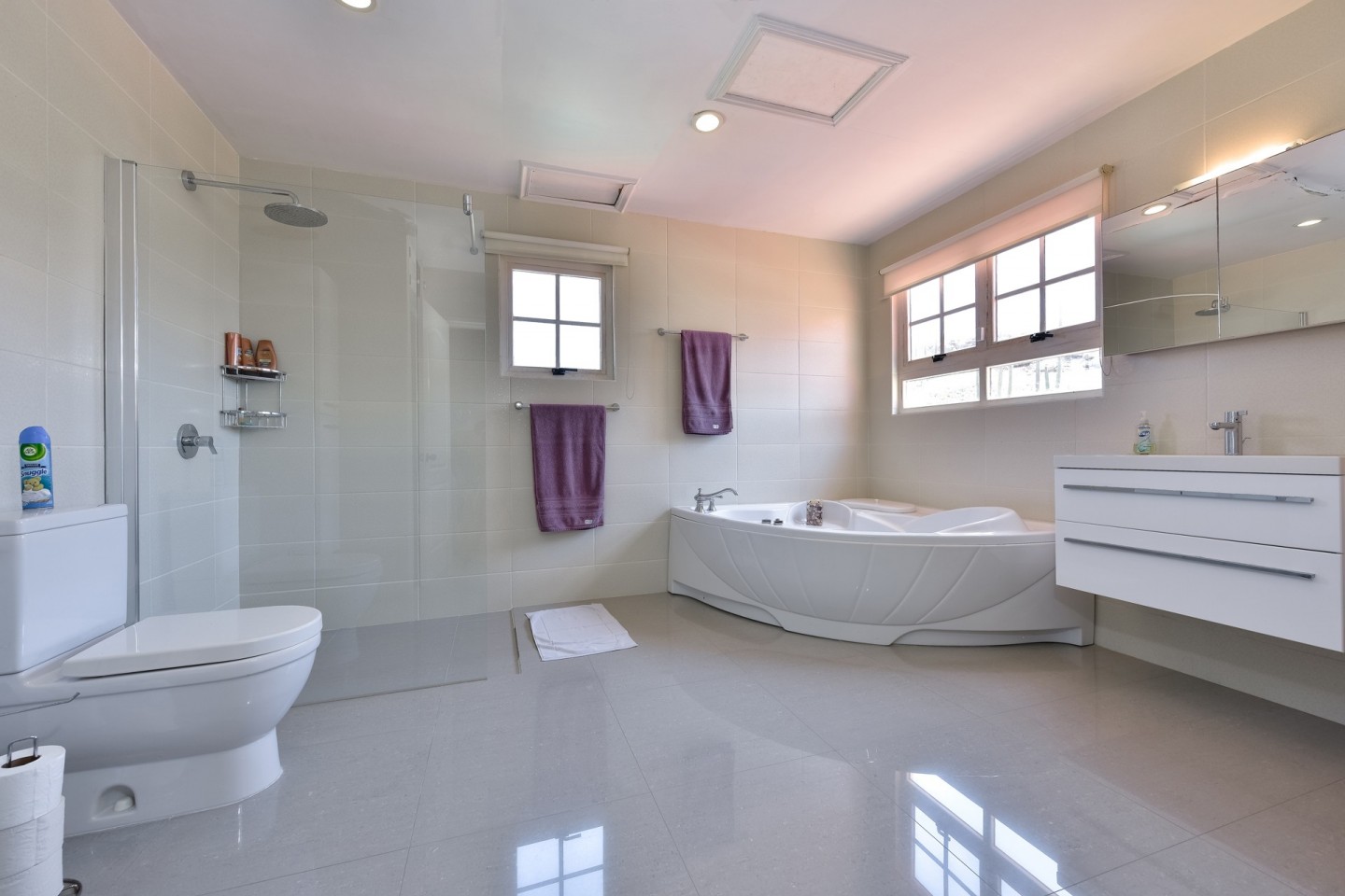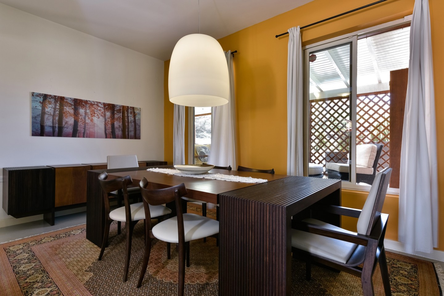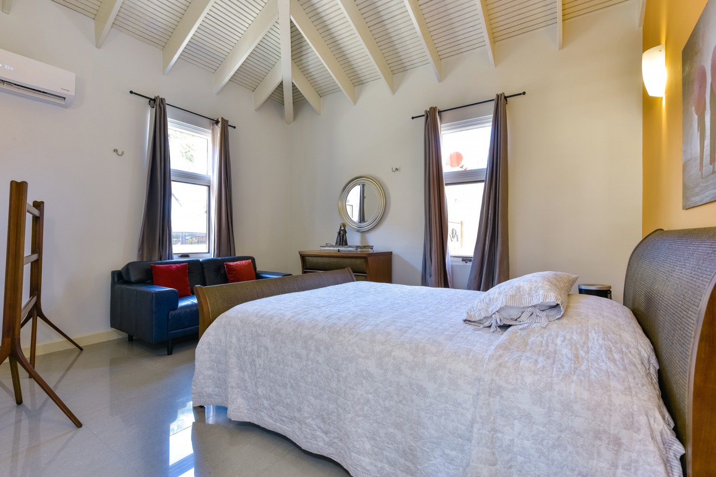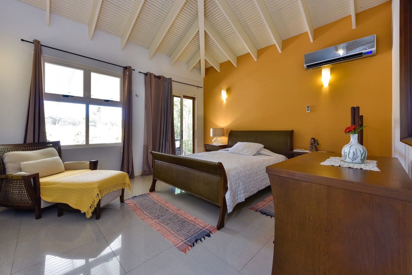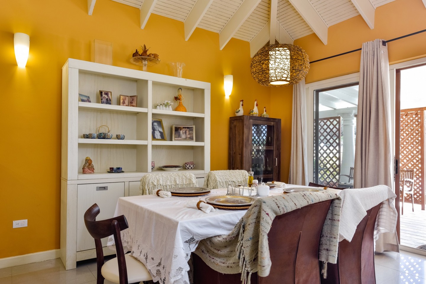 A beautifully landscaped front entrance greets you as you enter the residence. Natural light floods the open and inviting living room, designed for comfort and entertaining. The attached dining room offers the perfect space to host dinner parties and gather with friends and family. A spacious traditionally styled kitchen brings in elegance and functionality. Fully equipped with branded stainless steel appliances e.g. built-in dishwasher oven, refrigerator, cooktop with hood range as well as a double sink, natural stone countertops and breakfast bar. Adjacent, the casual ding room with incredible wood beam ceilings opens up to the outside covered patio which creates the ideal indoor/outdoor dining experience. The main floor promotes a light and bright palate with natural daylight throughout each of the 3 downstairs bedrooms. All three bedrooms have their own private en-suite bathrooms whereas one of the three has its own entrance to the pool area with private terrace. There is also half bath and maids quarter with a private entrance. The master suite with soaring beam ceilings is located upstairs and has its own walk-in closet as well as en-suite bathroom with floating double sinks, whirlpool bath and glass shower. A separate small bedroom is attached to the master and can be converted into a at-home office.