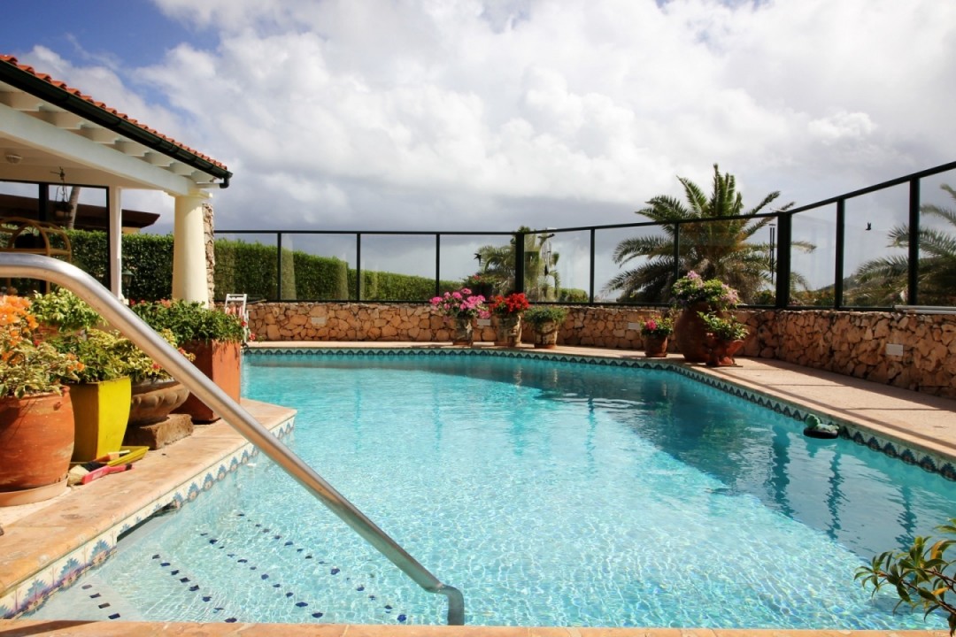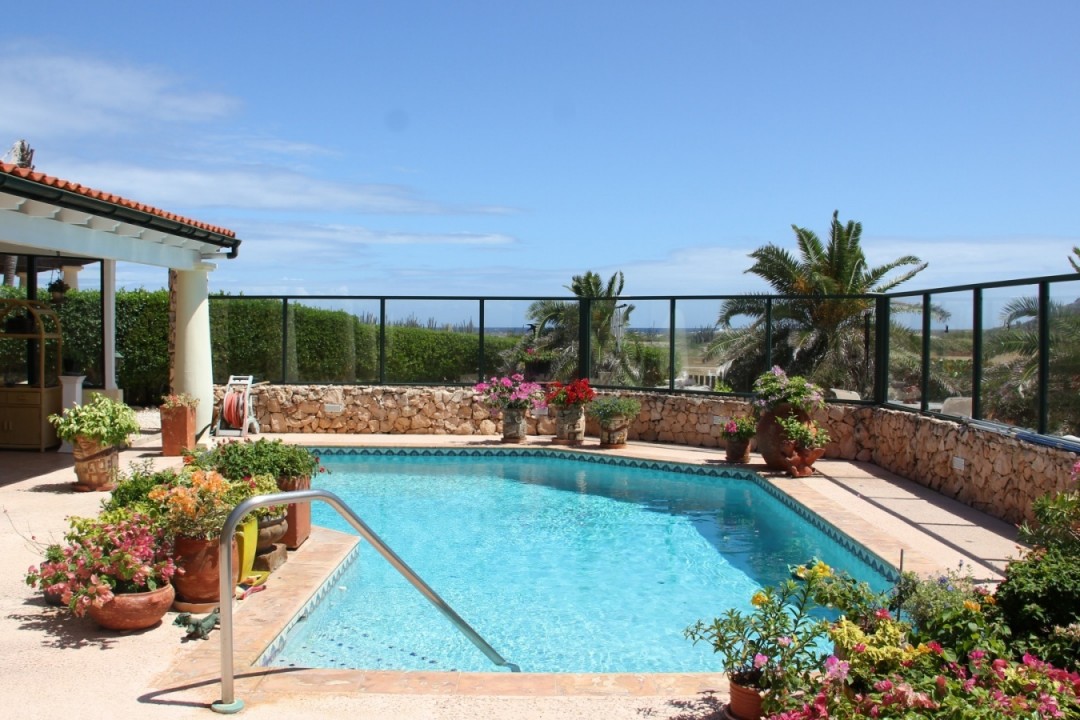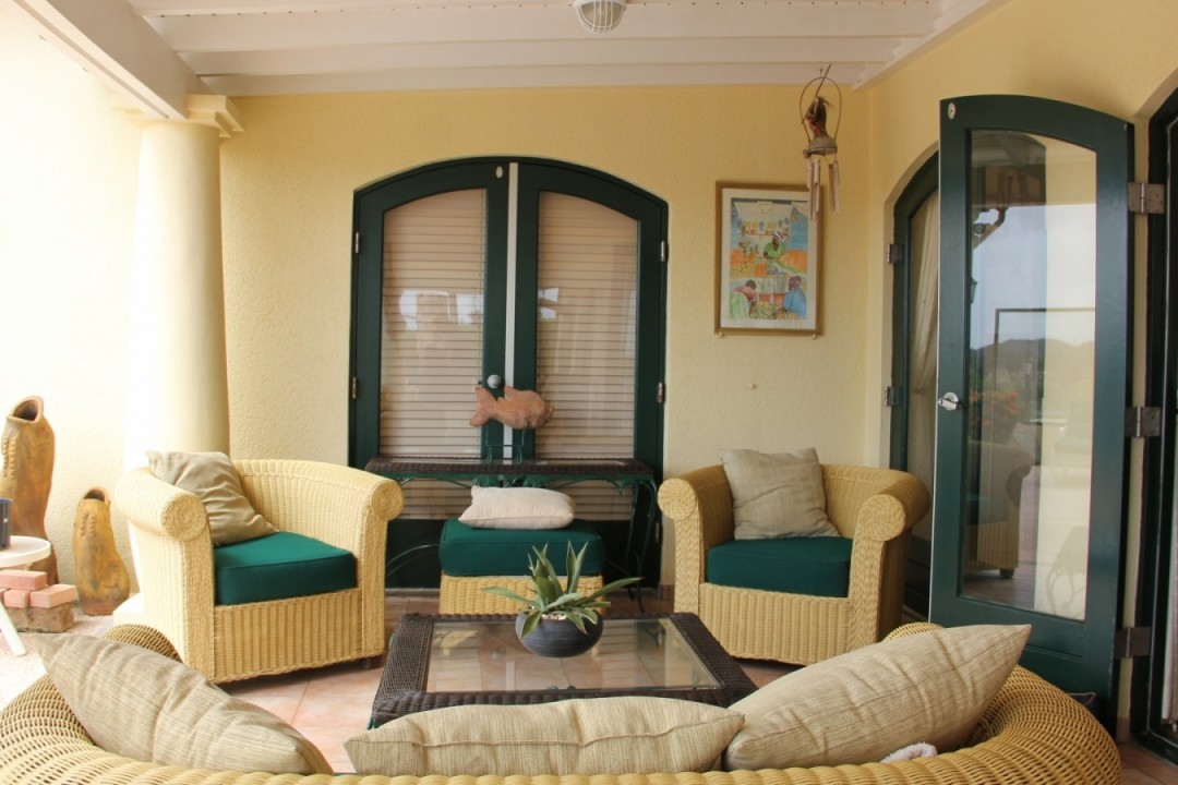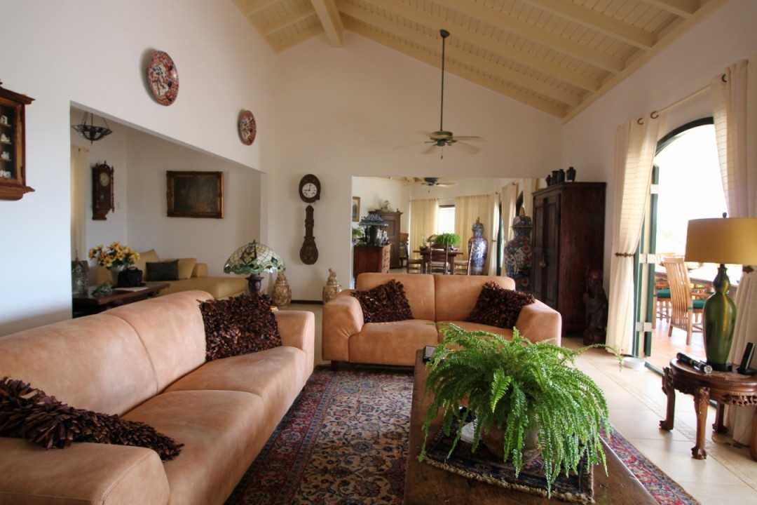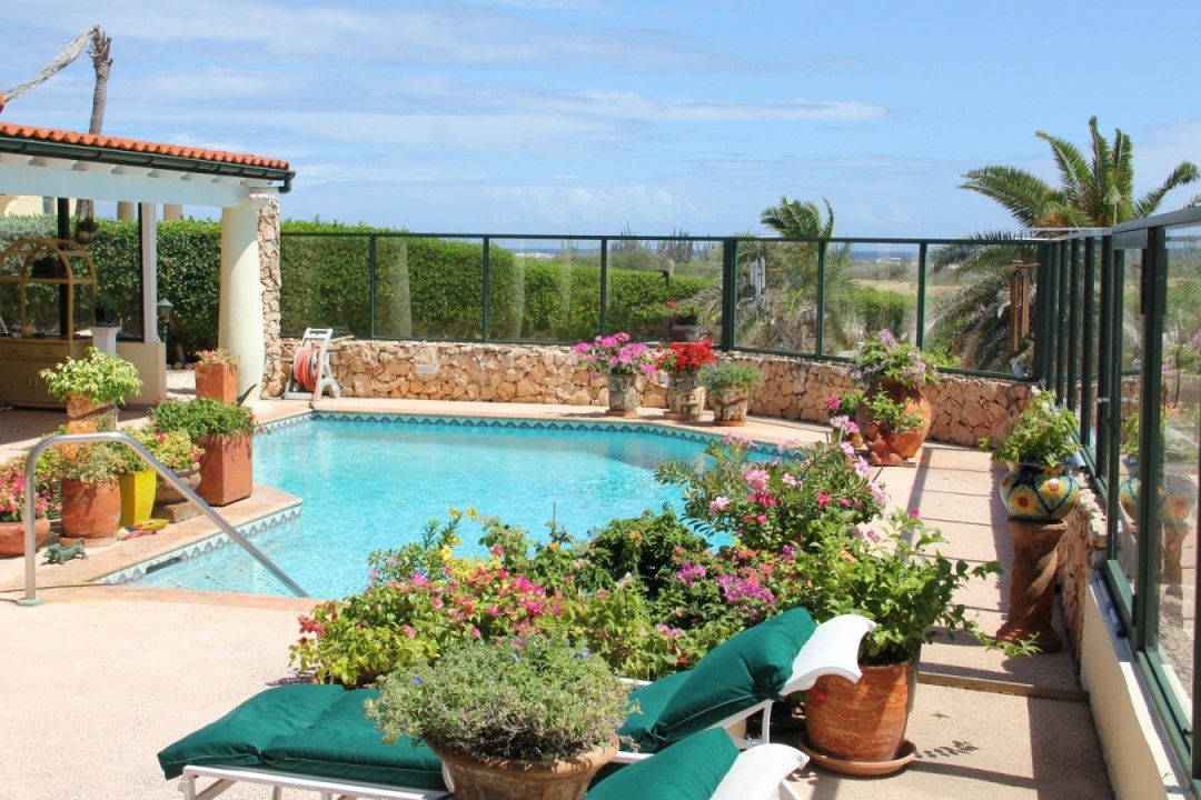 Beautiful modern villa located in the exclusive Tierra del Sol Golf resort. Tierra del Sol offers condos, villas and estate homes. It is Aruba’s Premiere Master planned gated community with a Spa, Country Club and 18 hole Championship Golf. This flamboyant villa is ideally located with breath taking ocean and golf course views. The property has a beautiful landscaped front and back yard with a spacious pool. In the garden you will feel a comfortable wind while enjoying the pool under the sun. Do you like shadow more? Than the large patio with a dining and sitting area is perfect for you! The living, dining and foyer areas are complemented by 3 large bedrooms and 3,5 bathrooms and a spacious kitchen. The property also offers a one car garage. The home has been maintained in excellent condition.