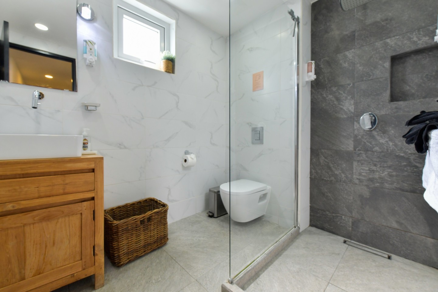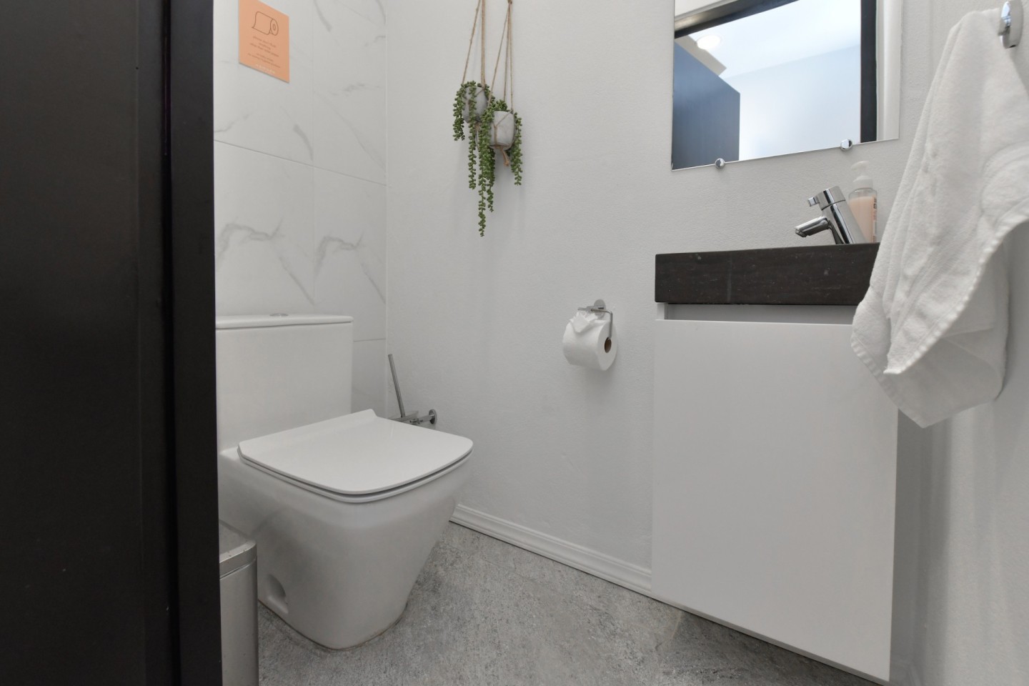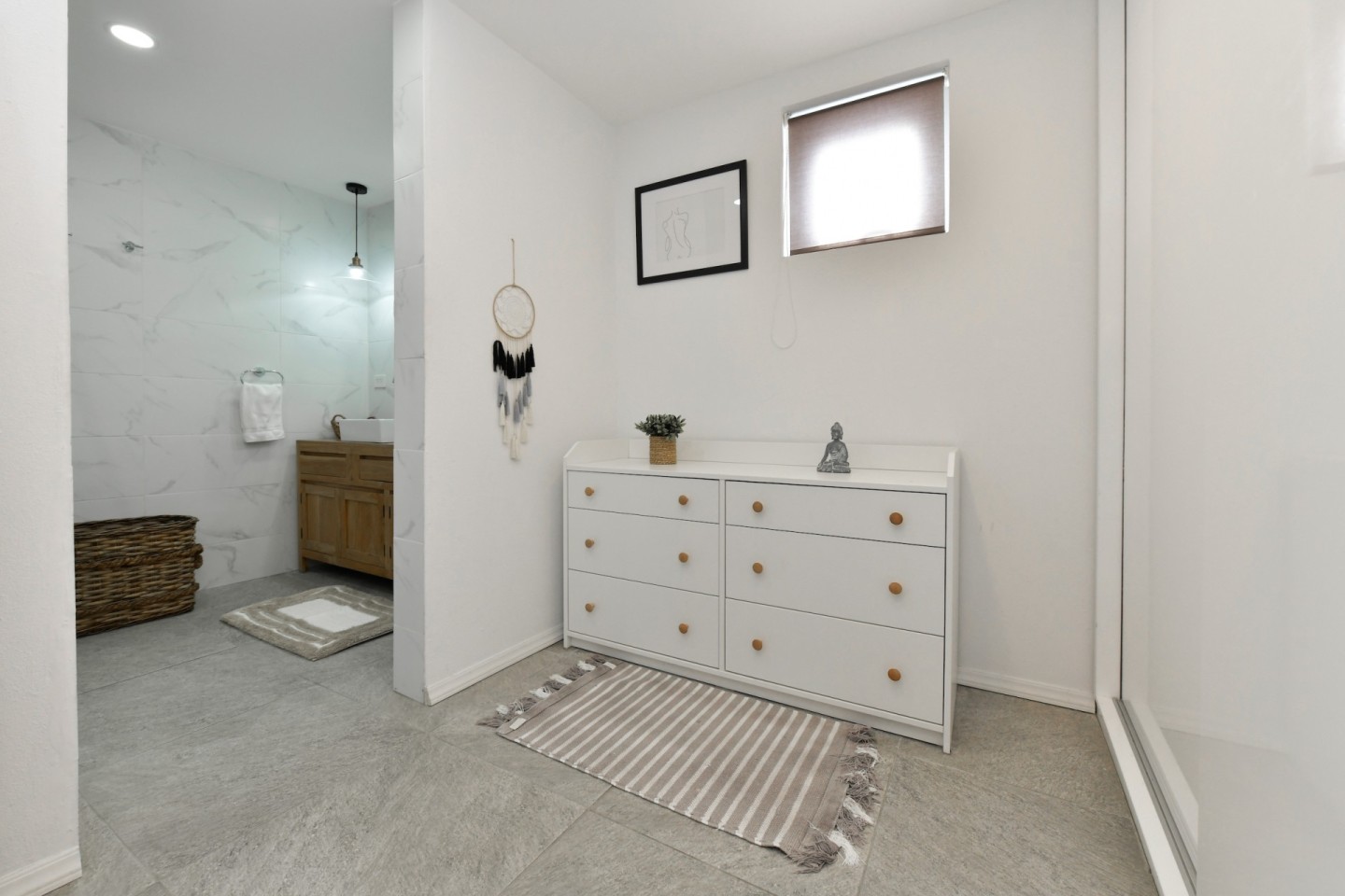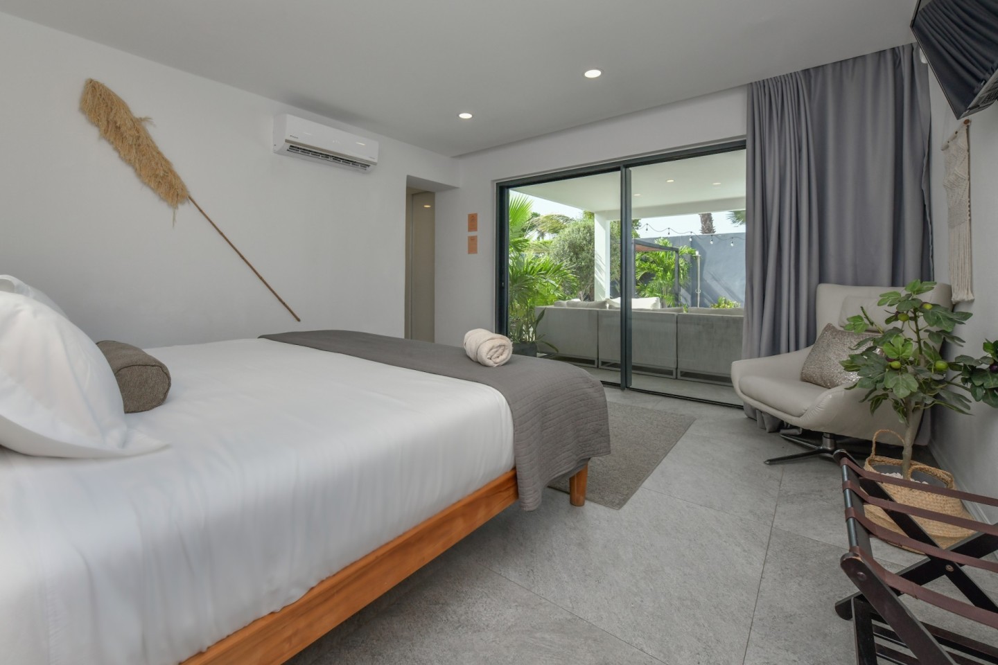 Upon entering the home, you will find an open-concept living, dining and fully equipped kitchen area, filled with natural light and warmth. Sliding doors open to the covered patio and lush garden, offering seamless indoor-outdoor living. A convenient hallway toilet is tucked away for guests and the laundry room is discreetly hidden behind a door for easy access. The master bedroom features a walk-in closet, an ensuite bathroom, and sliding doors that lead to the patio, providing views of the garden and pool for a peaceful retreat. This stylish residence includes three bedrooms and two and a half bathrooms, with a studio at the front of the property that can easily be converted into a fourth bedroom with an additional third bathroom, offering even more flexibility.